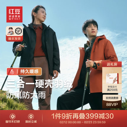 红豆羽绒服男防风防水户外硬壳可脱卸内胆冲锋三合一保暖外套男士