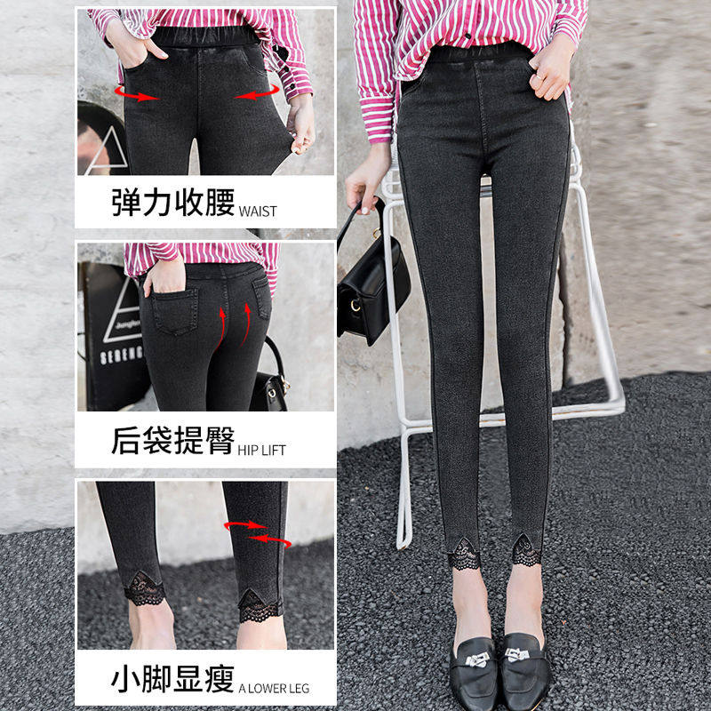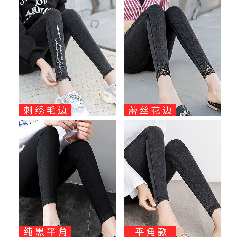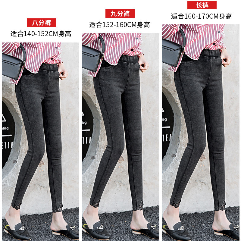 八分小个子灰色牛仔打底裤女外穿春秋薄款高腰紧身九分小脚铅笔裤