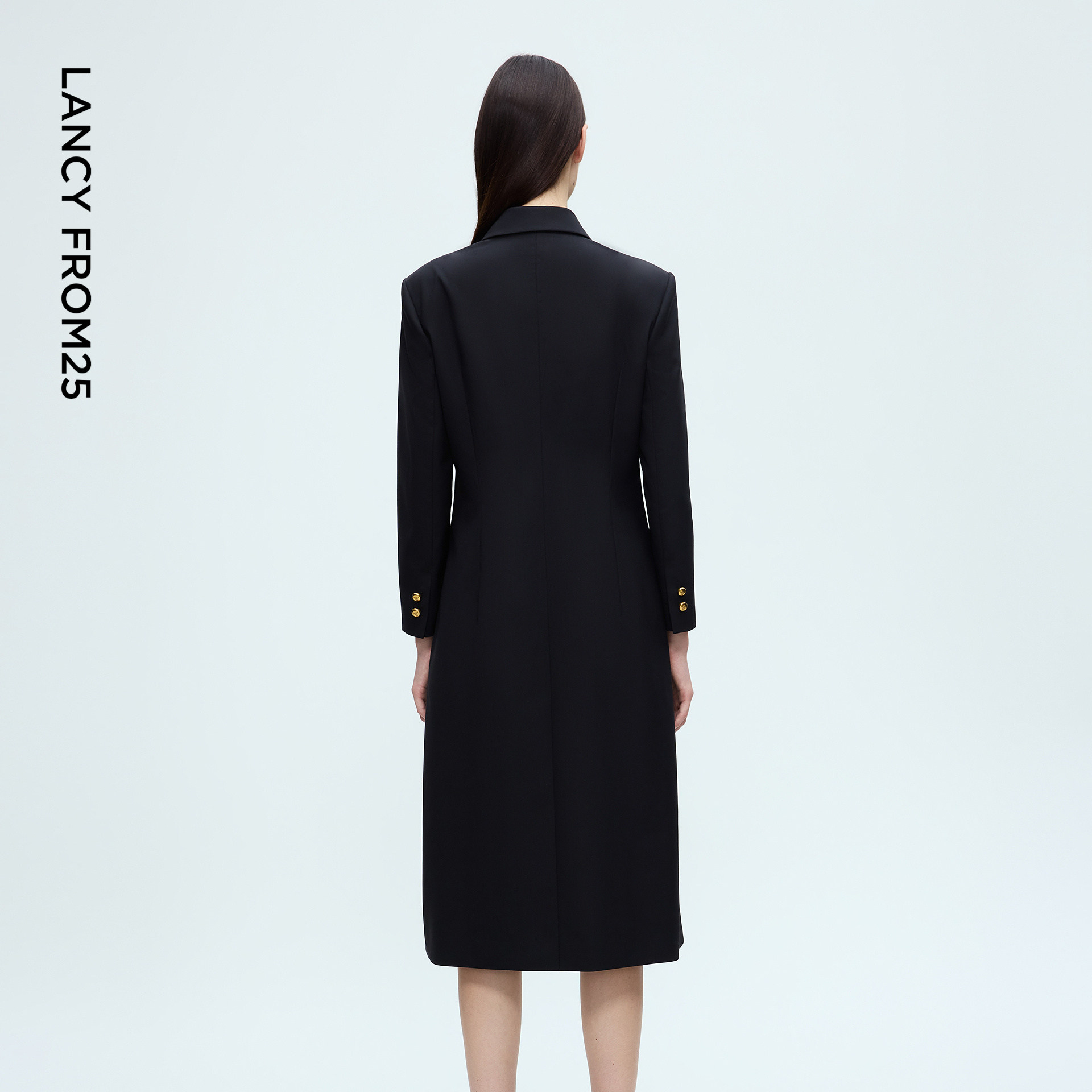 朗姿纯羊毛翻领直筒衬衫连衣裙复古干练中长裙女2025年冬季新款