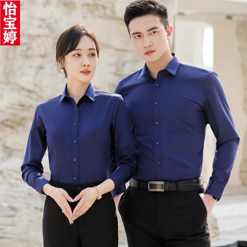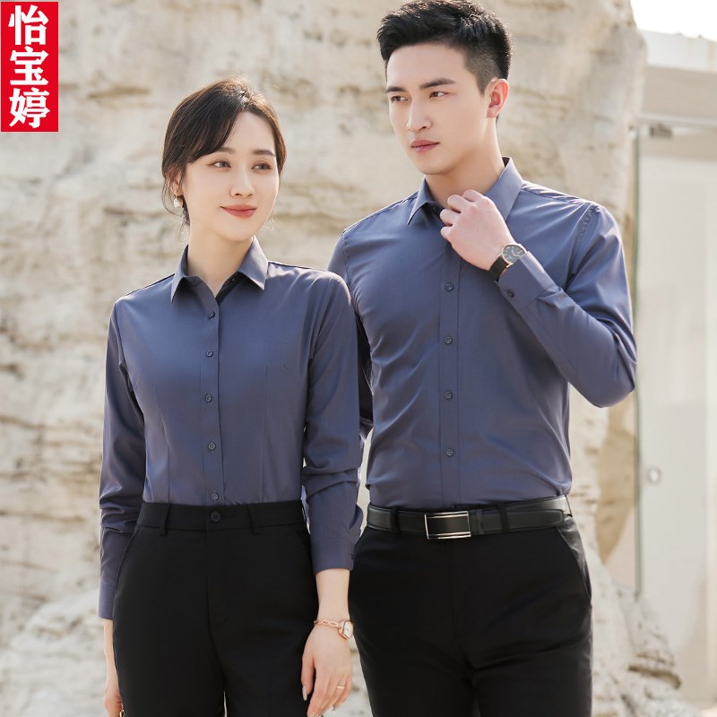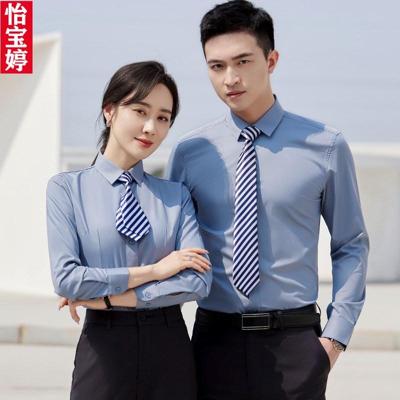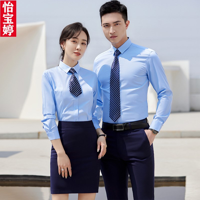 工装浅蓝色长袖衬衫套装商务白色衬衫4S店工作服定制LOGO职业衬衣