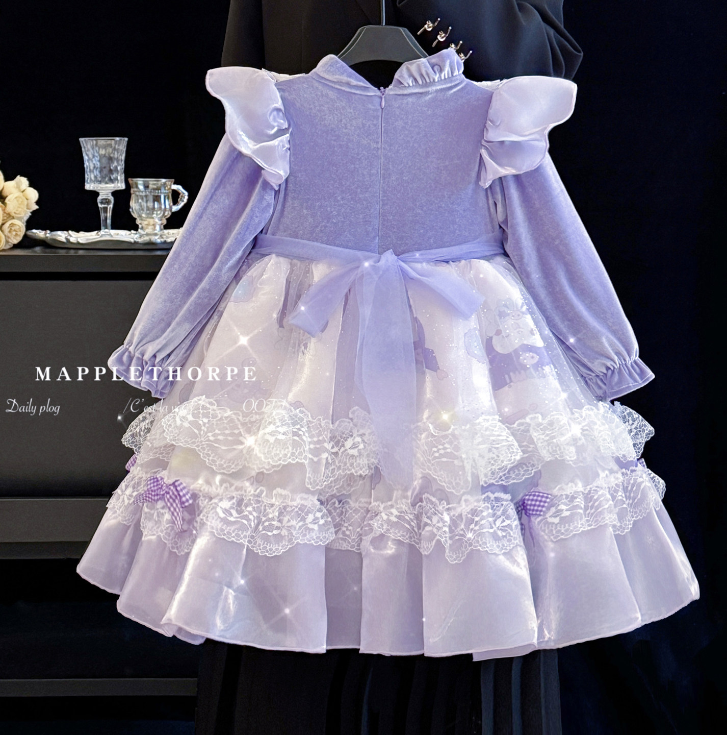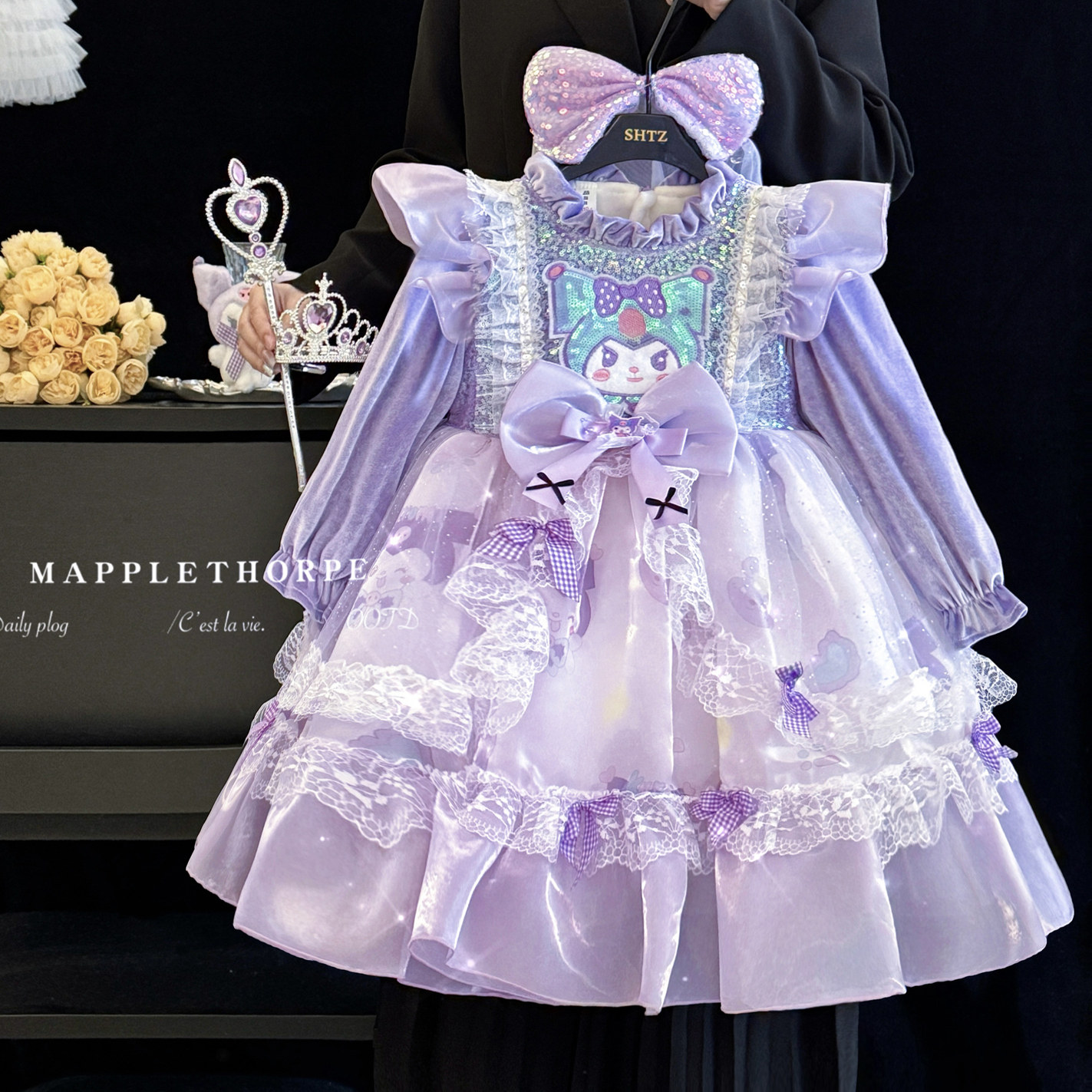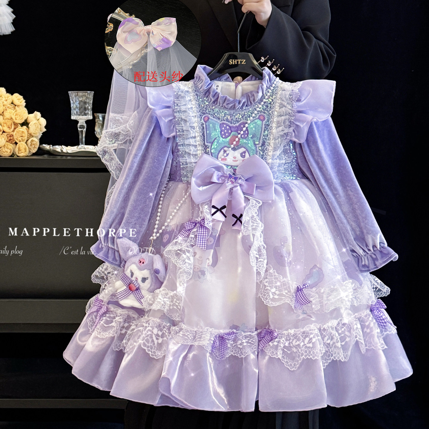 库洛米裙子高端女童洛丽塔连衣裙冬装2025新款儿童加绒生日礼服裙
