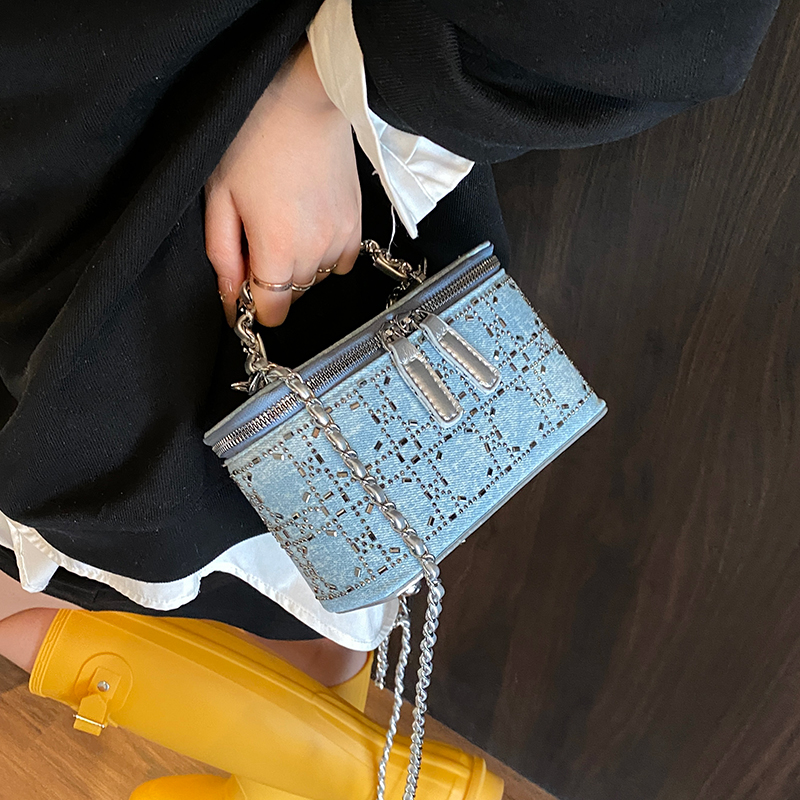 高级感亮钻盒子小包包女2025新款潮时尚牛仔小方包夏季链条斜挎包