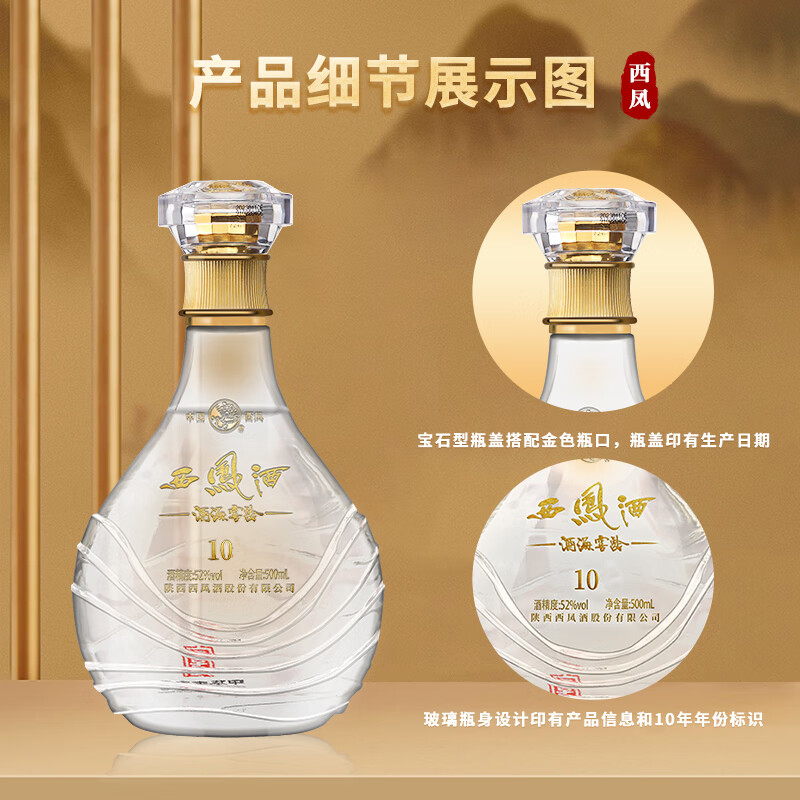 西凤酒10年52度箱装陕西凤香型白酒纯粮食高度年份酒口粮酒