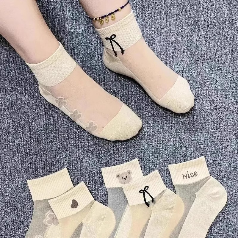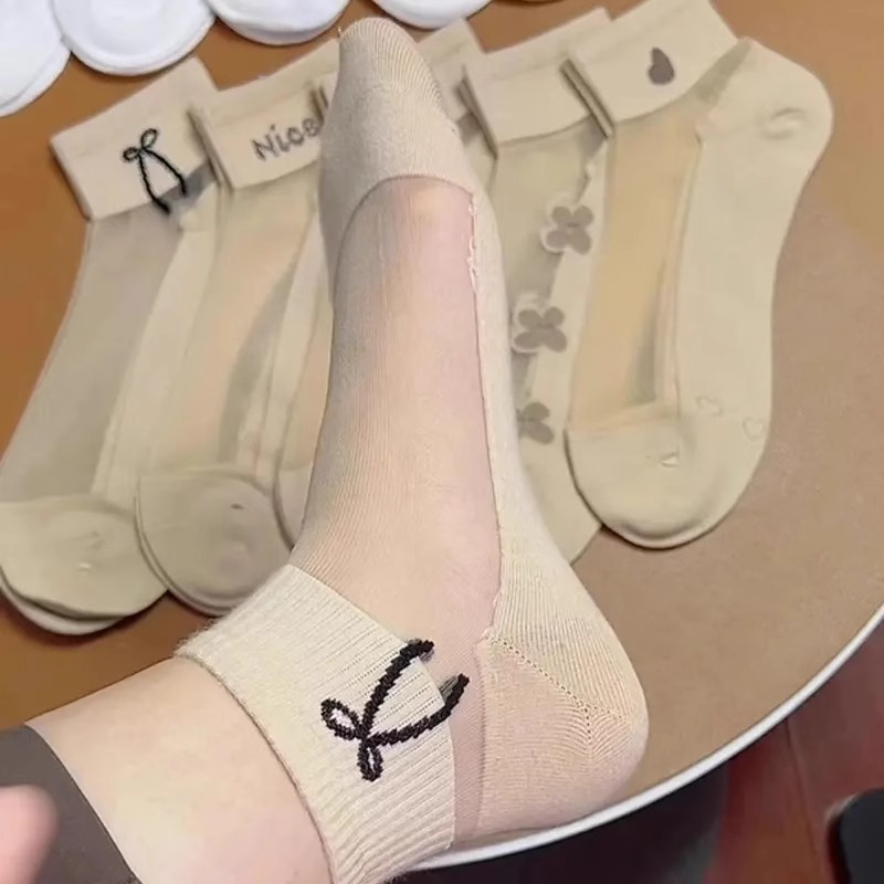女士水晶丝袜春夏季薄款蕾丝花边浅口百搭夏天吸汗透气玻璃丝短袜