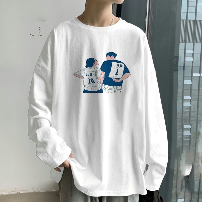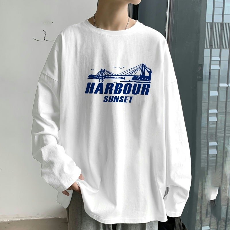 白色长袖t恤男夏季薄款宽松潮牌ins港风卫衣韩版潮流春秋打底衣服