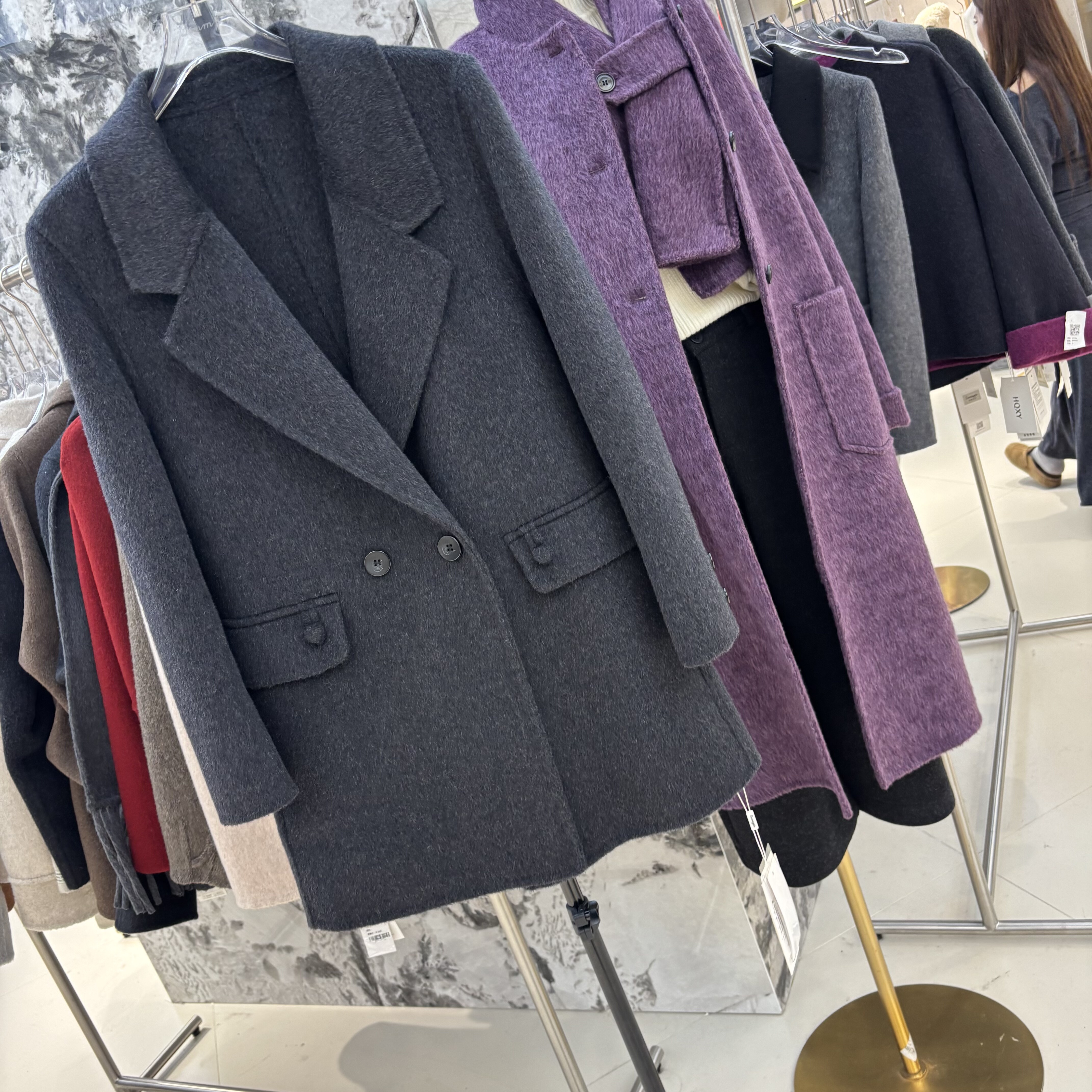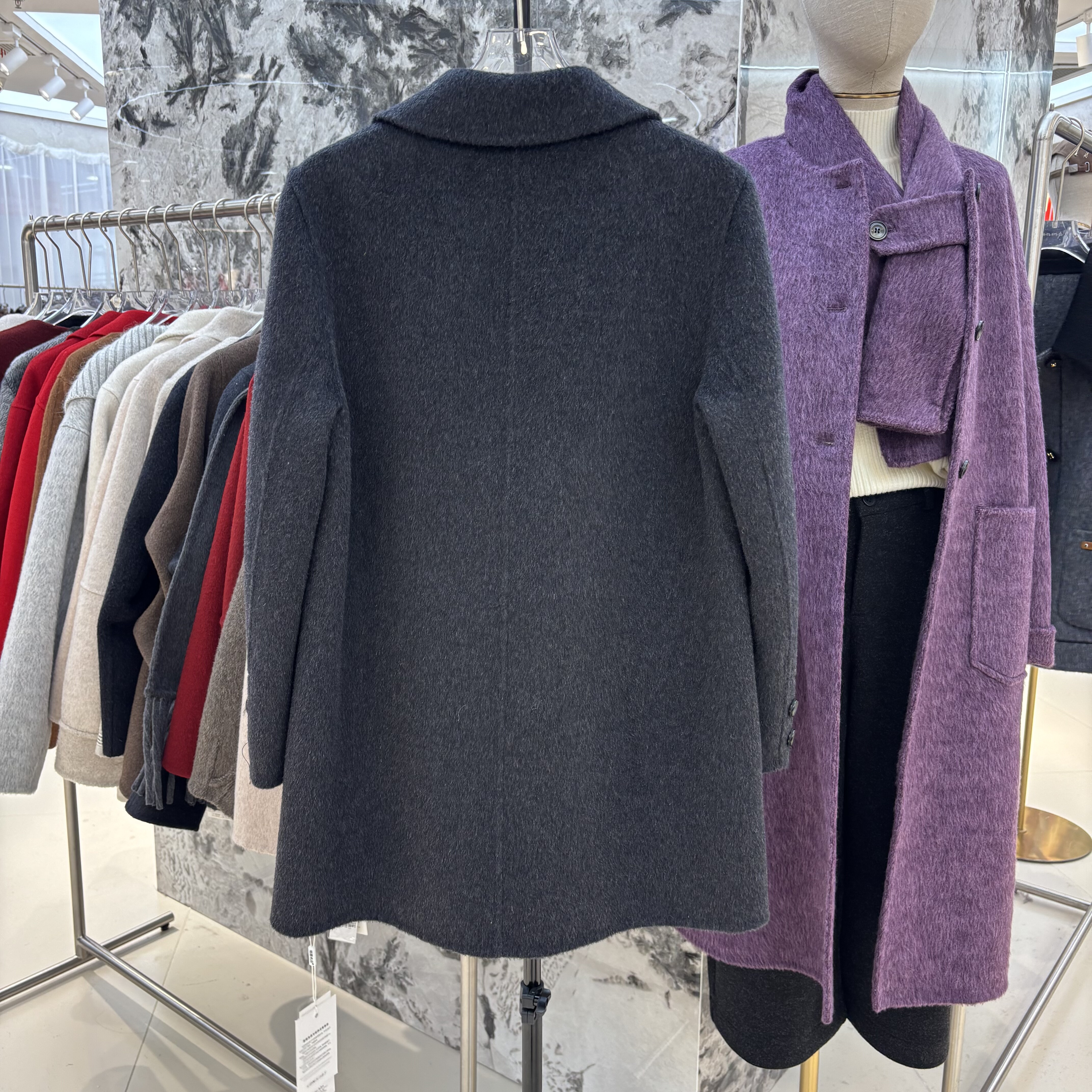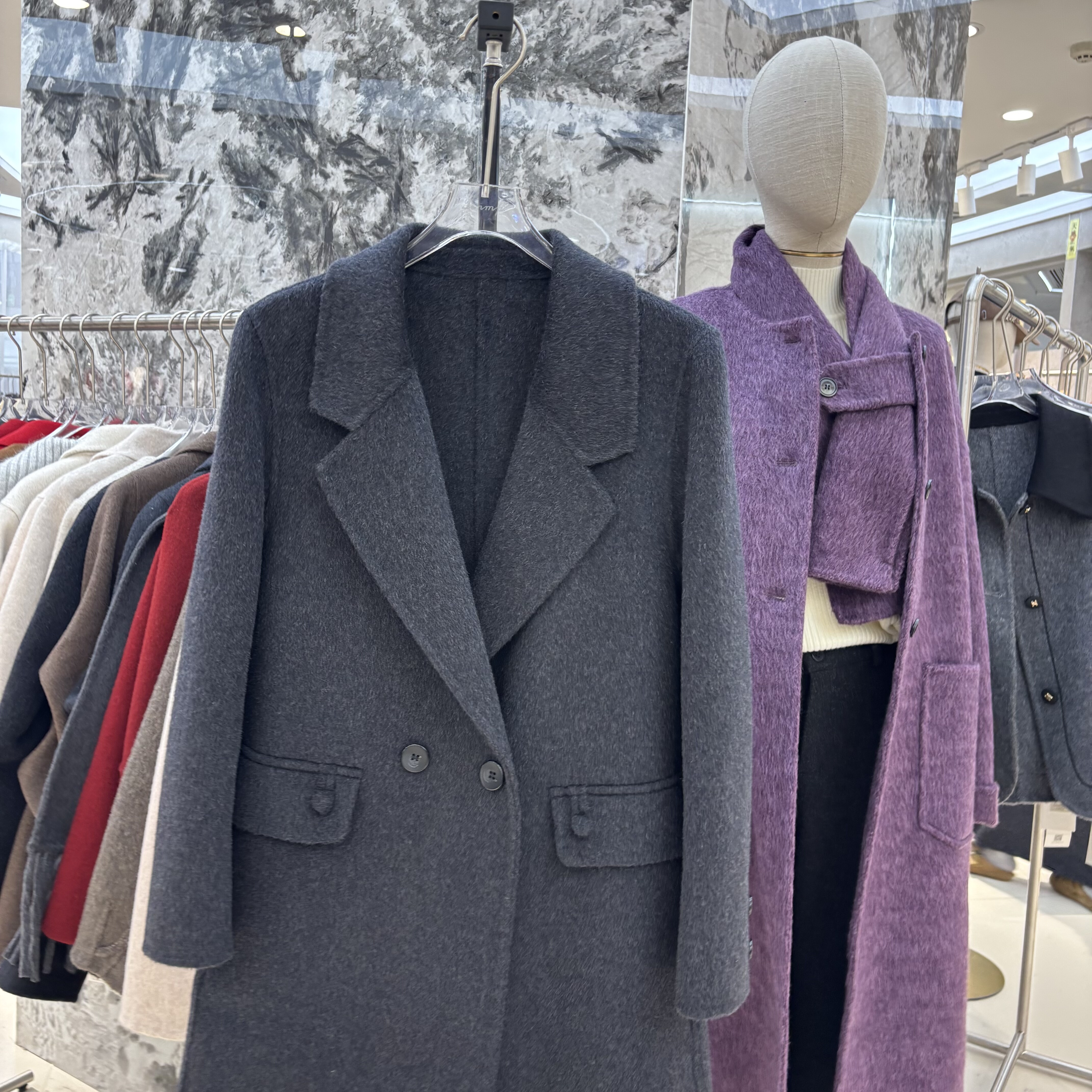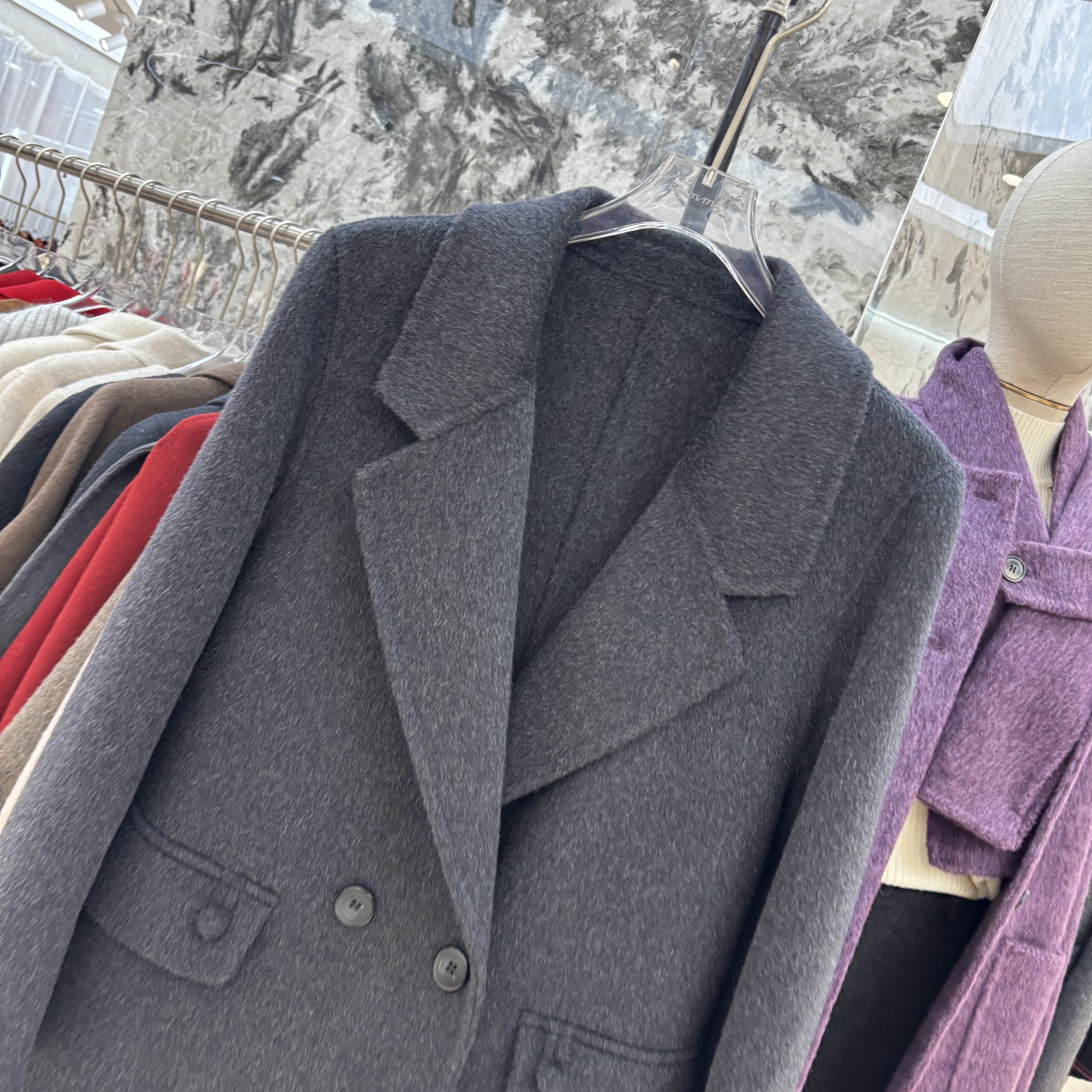 2025秋冬新款韩版宽松显瘦百搭双排扣毛呢外套女中长款大衣
