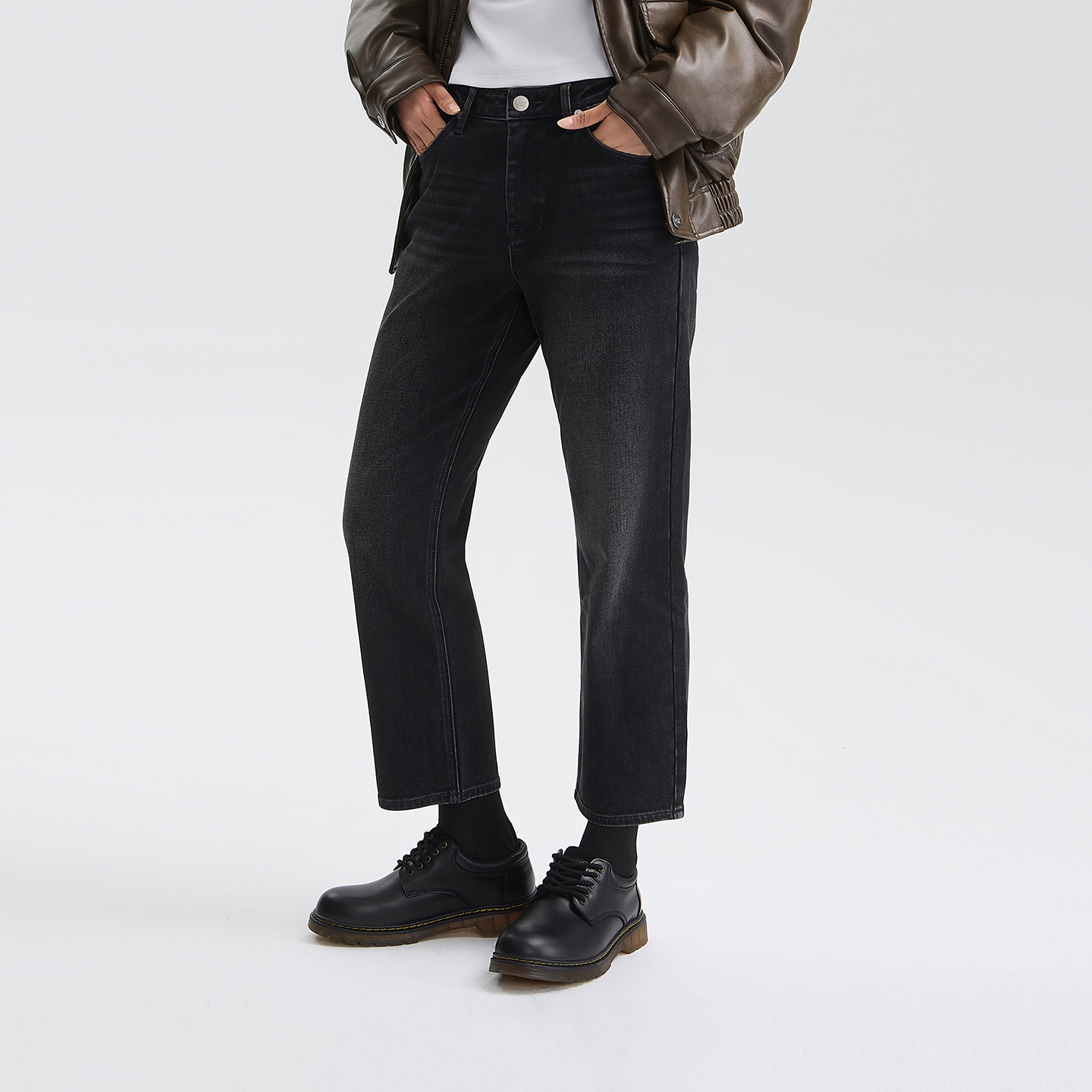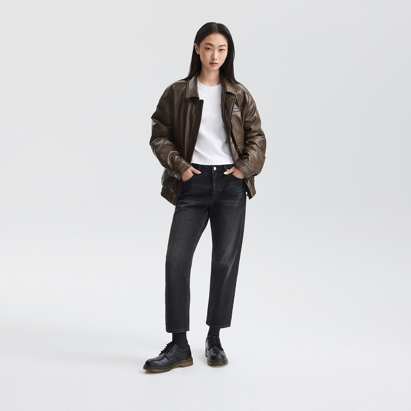 【张凌赫代言】Lee25冬新舒适直筒五袋款磨毛黑灰色女保暖牛仔裤