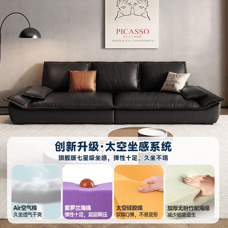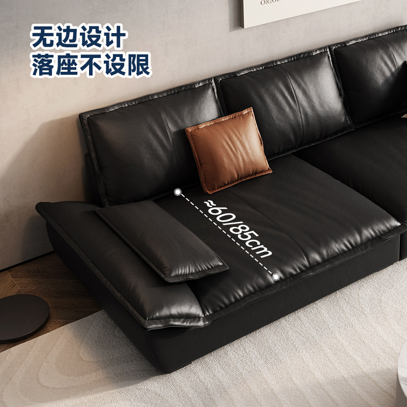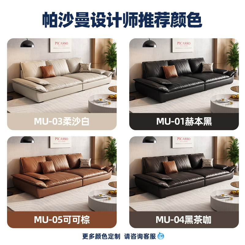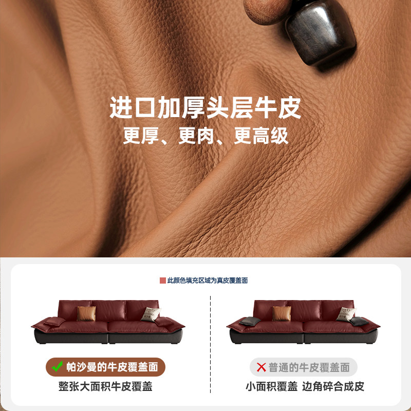 帕沙曼帆船真皮沙发头层牛皮意式极简小户型客厅超宽坐深直排羽绒
