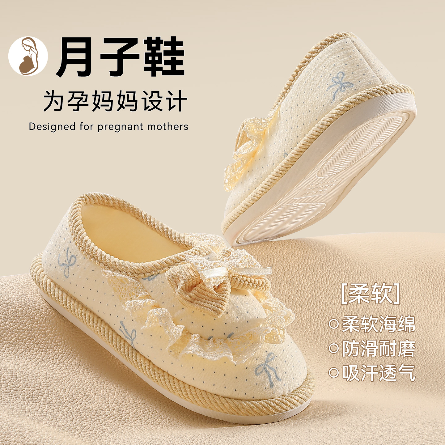 月子鞋夏季薄款十月份家居室内防滑透气孕妇产妇保暖包跟棉拖鞋