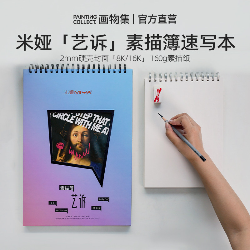 米娅加厚素描簿速写本8k16k活页硬壳素描本160g85g速写纸美术生学生绘画素描色彩画本空白画纸画画本