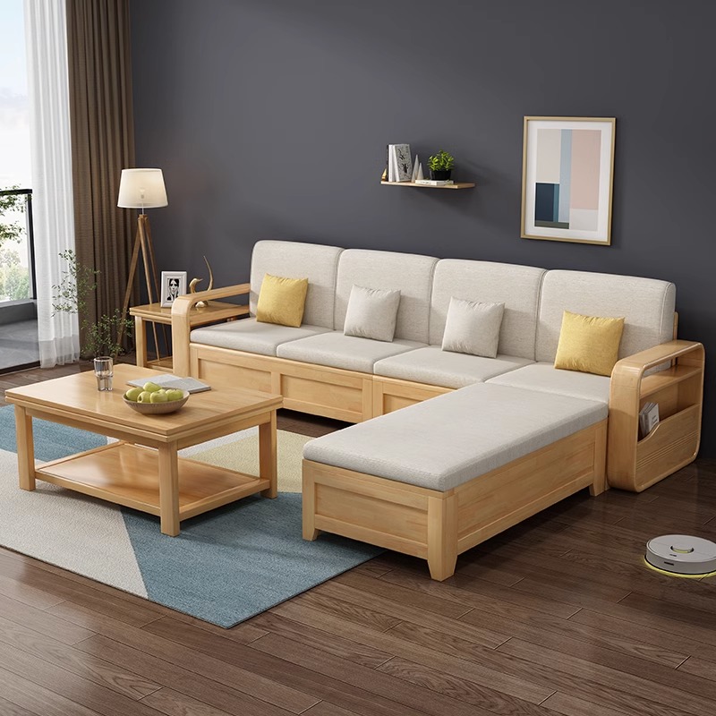 北欧实木沙发组合客厅现代简约布艺储物沙发新Q中式冬夏两用小户