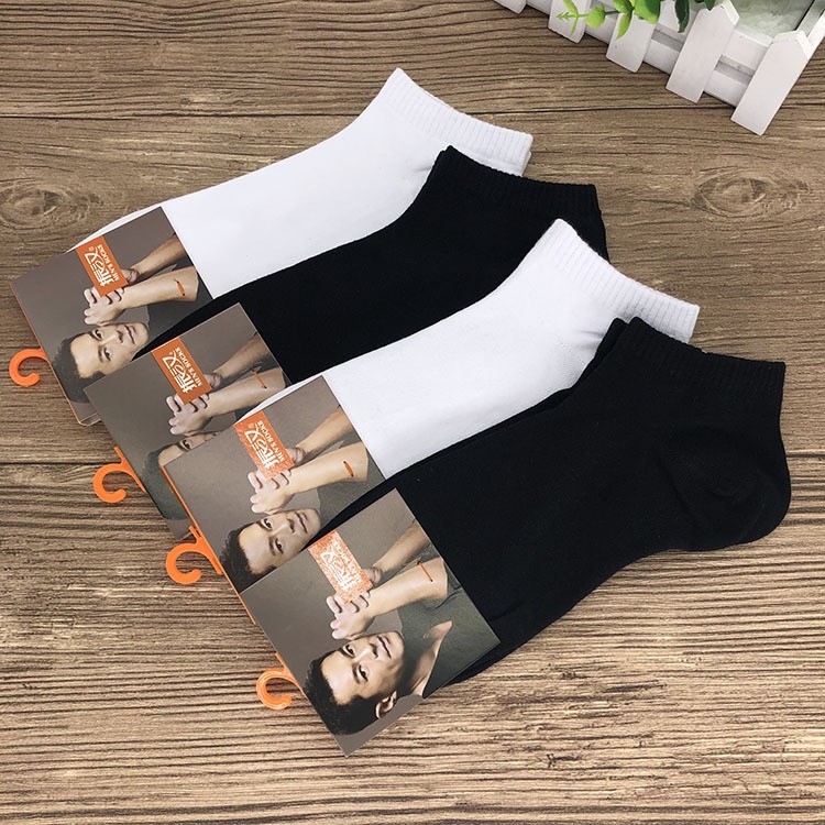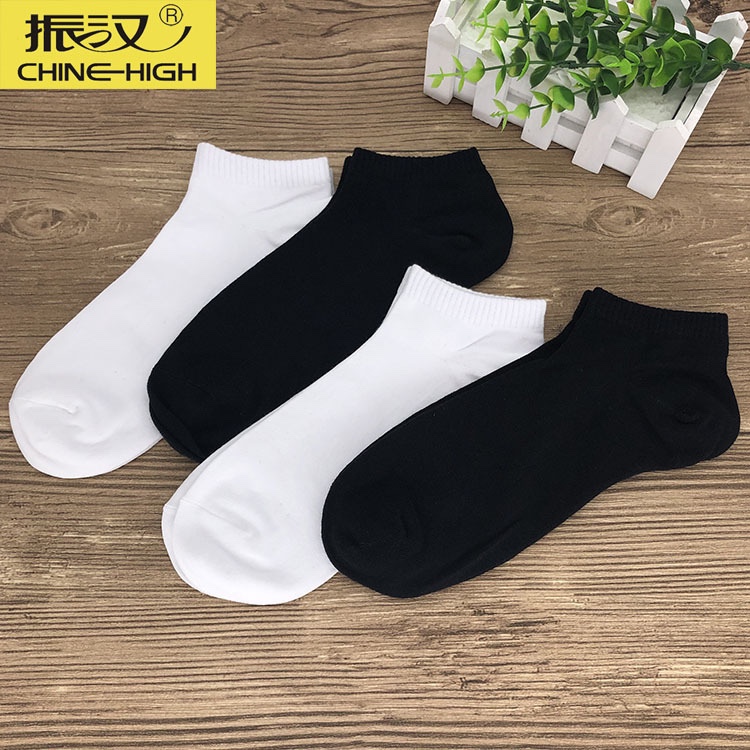 振汉春夏男女船袜全白全黑纯棉透气吸汗不臭脚短袜浅口袜4双一组