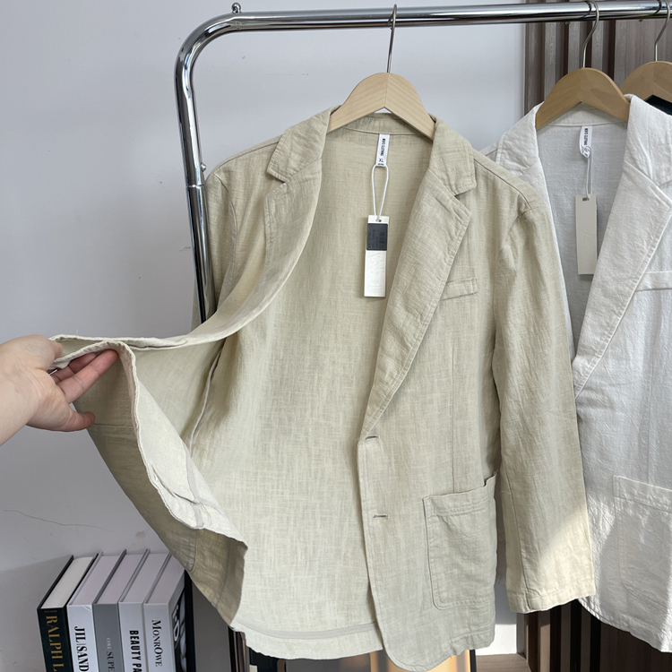 苎麻!春季男士外贸轻薄时尚纯色单层西服上衣商务休闲西装外套潮