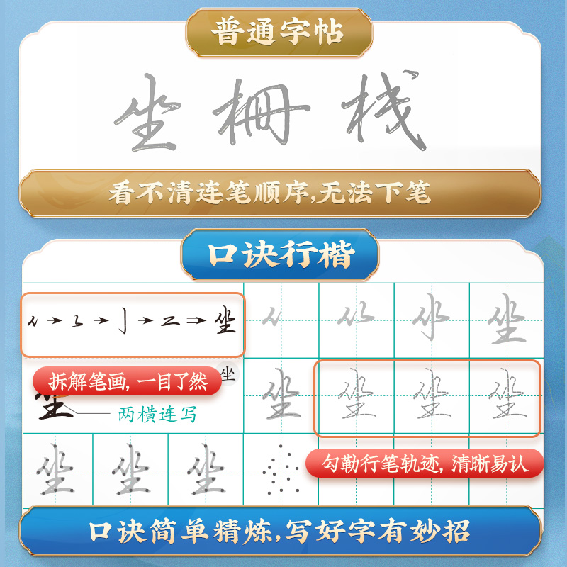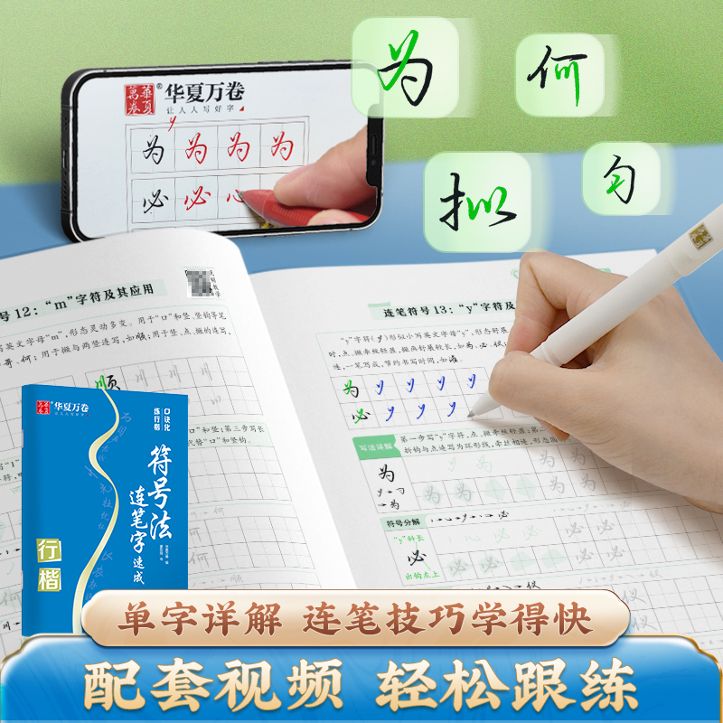 华夏万卷口诀化练行楷初学者零基础入门控笔训练成人练字硬笔书法描红写字本初高中生行楷笔画笔顺教程成年男女生连笔字速成练字帖
