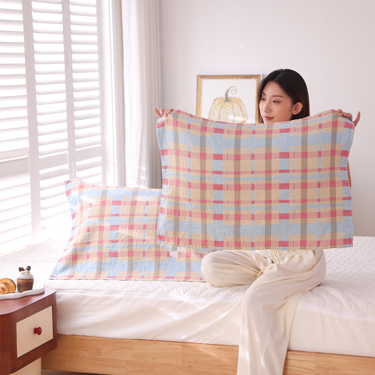 100%纯棉纱布枕巾一对装2025新款全棉简约家用枕头巾吸汗透气盖巾