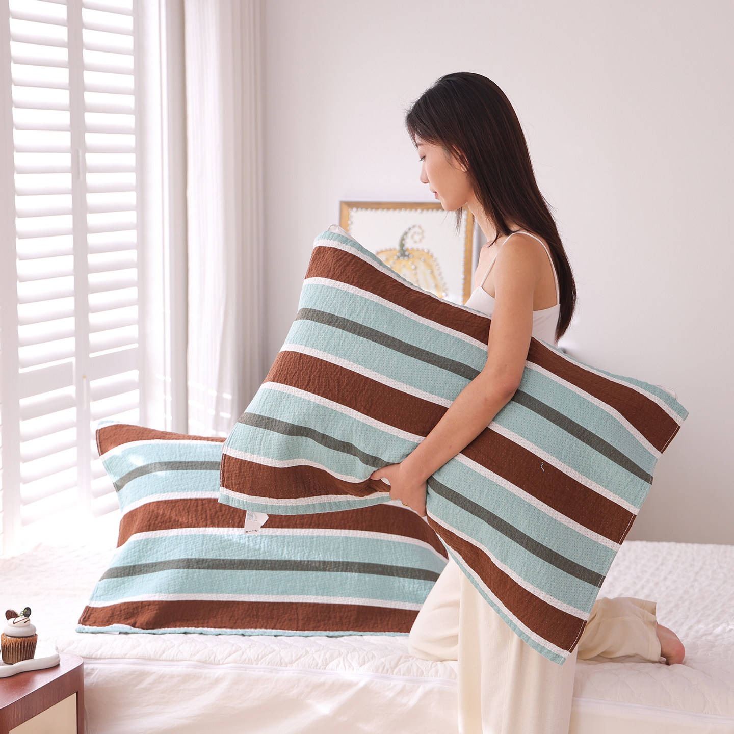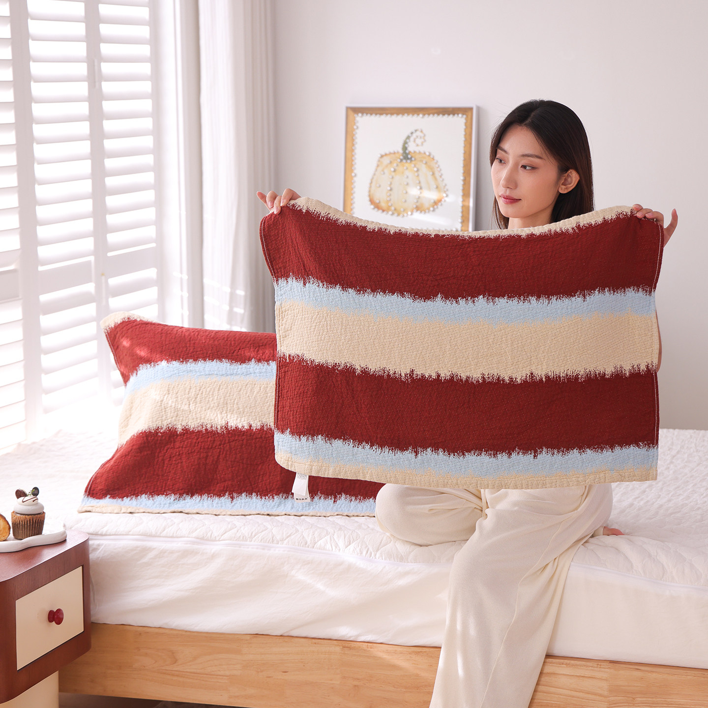 100%纯棉纱布枕巾一对装吸汗透气