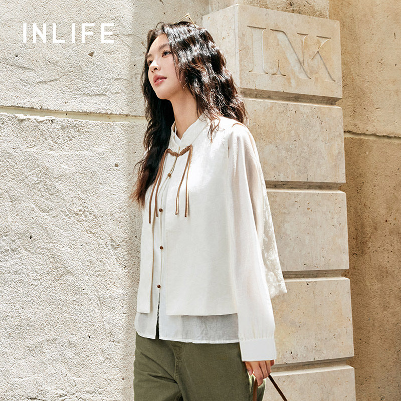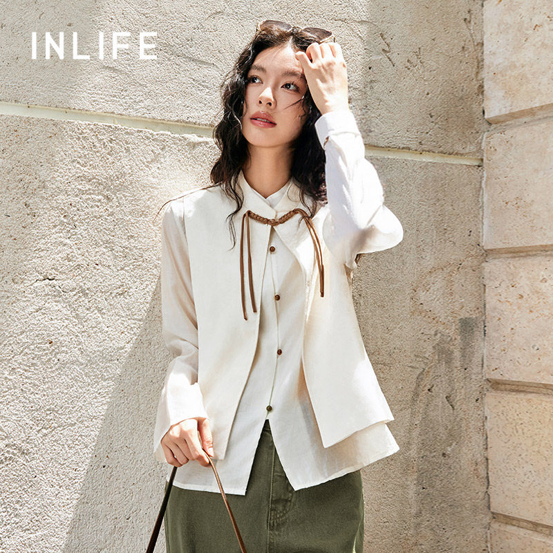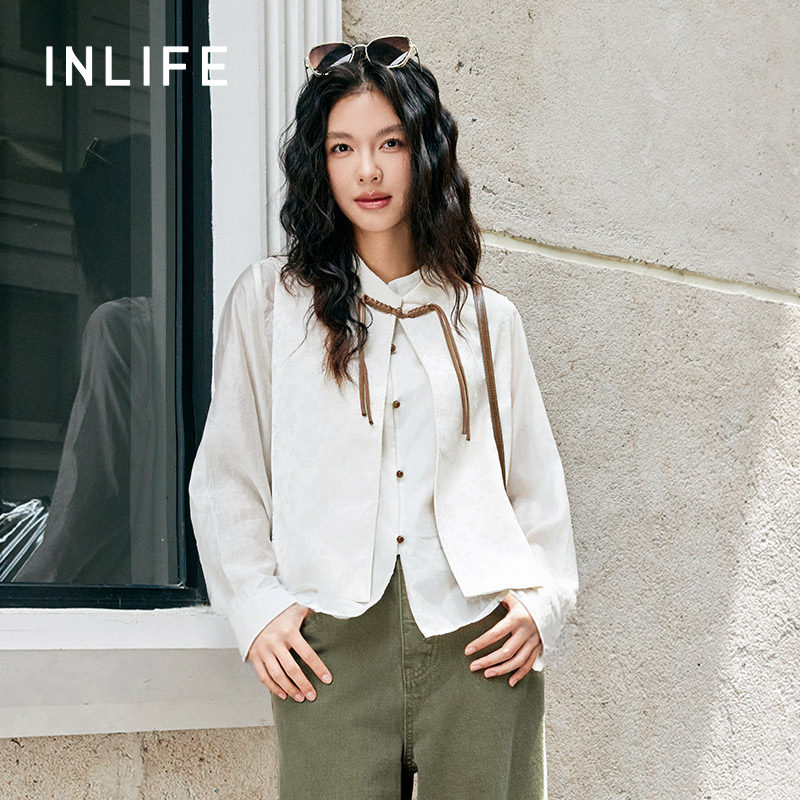 伊纳芙国风立领衬衫马甲两件套