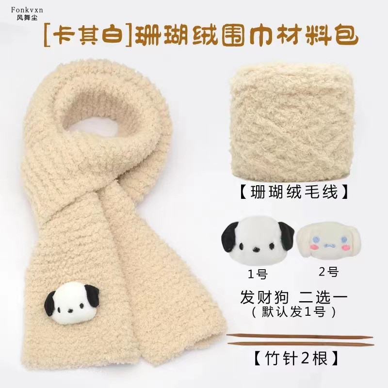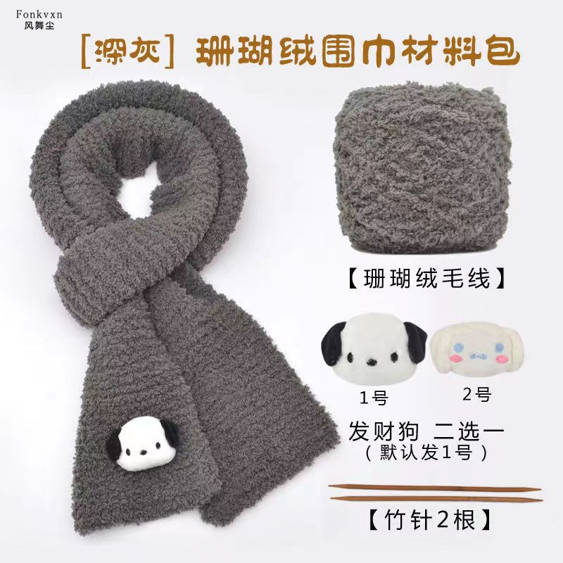 发财狗围巾毛线手工diy编织材料包珊瑚绒线团送男女朋友礼物围脖