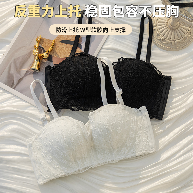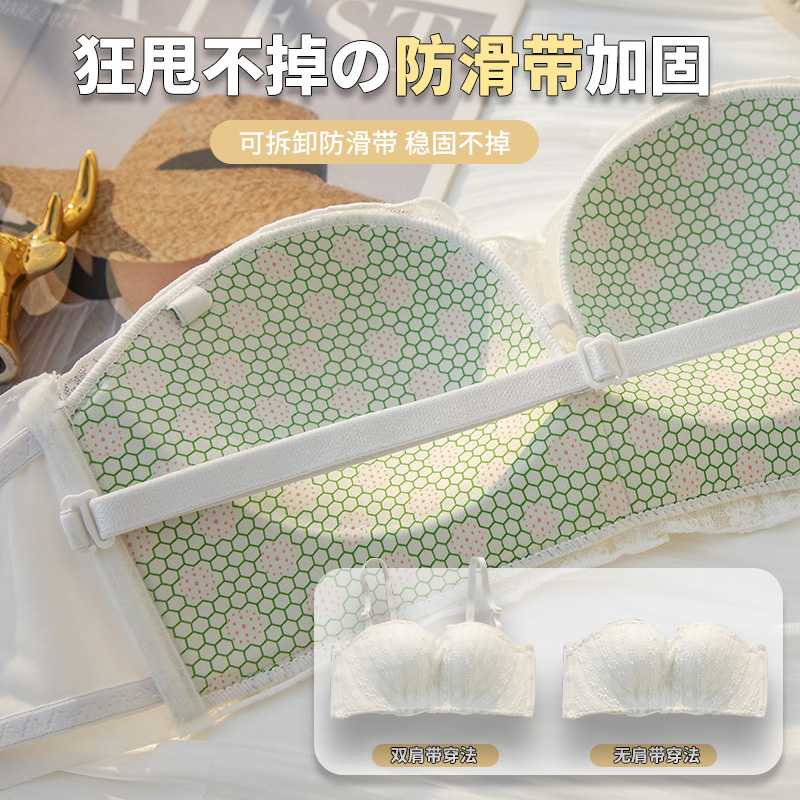 抹胸式美背内衣女无肩带防走光裹胸蕾丝性感少女风纯欲文胸罩学生