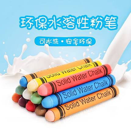 七巧果 12色无尘粉笔彩色粉笔水溶性粉笔儿童粉笔无毒水溶水性粉笔白色环保无毒儿童家用专用
