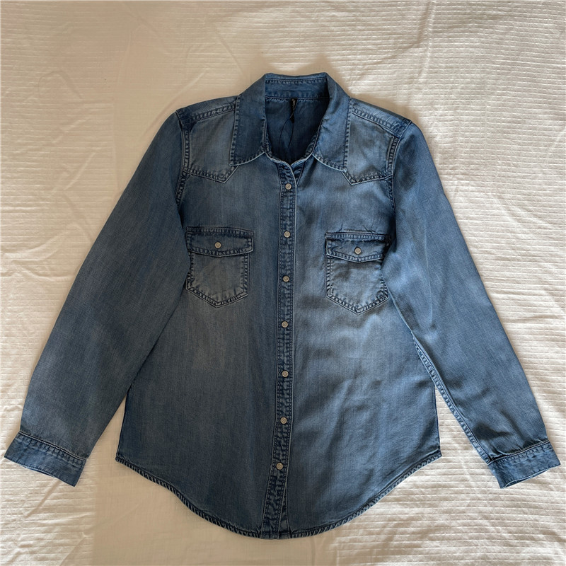 天丝牛仔 日单工厂订单翻领长袖修身衬衫 2023春款女款精品衬衣