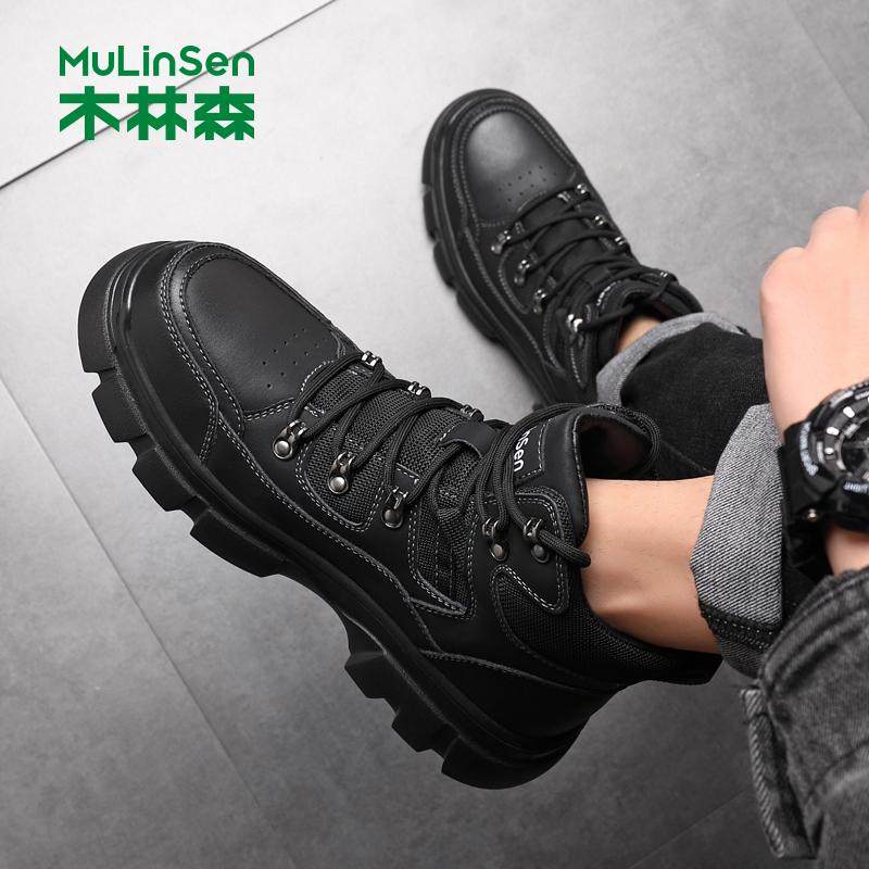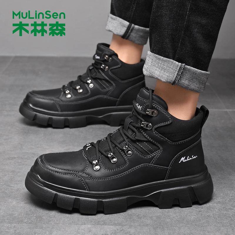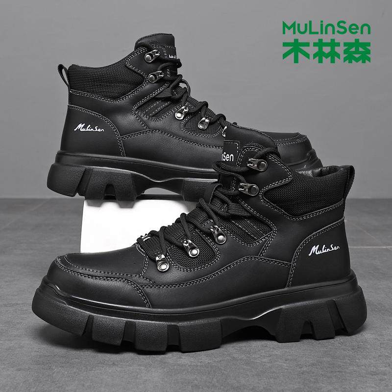 木林森男鞋2025冬季季户外休闲高帮鞋真皮雪地靴男款马丁工装靴子