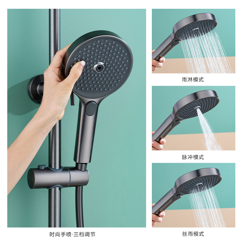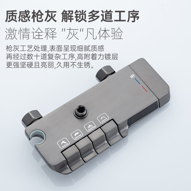 德国全铜智能数显淋浴花洒套装卫生间钢琴按键枪灰家用增压淋浴阀