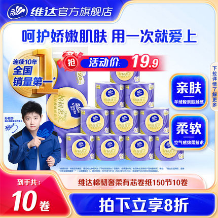 维达棉韧奢柔3层卷纸羊绒感纸巾卷筒纸家用实惠装整箱厕纸卫生纸