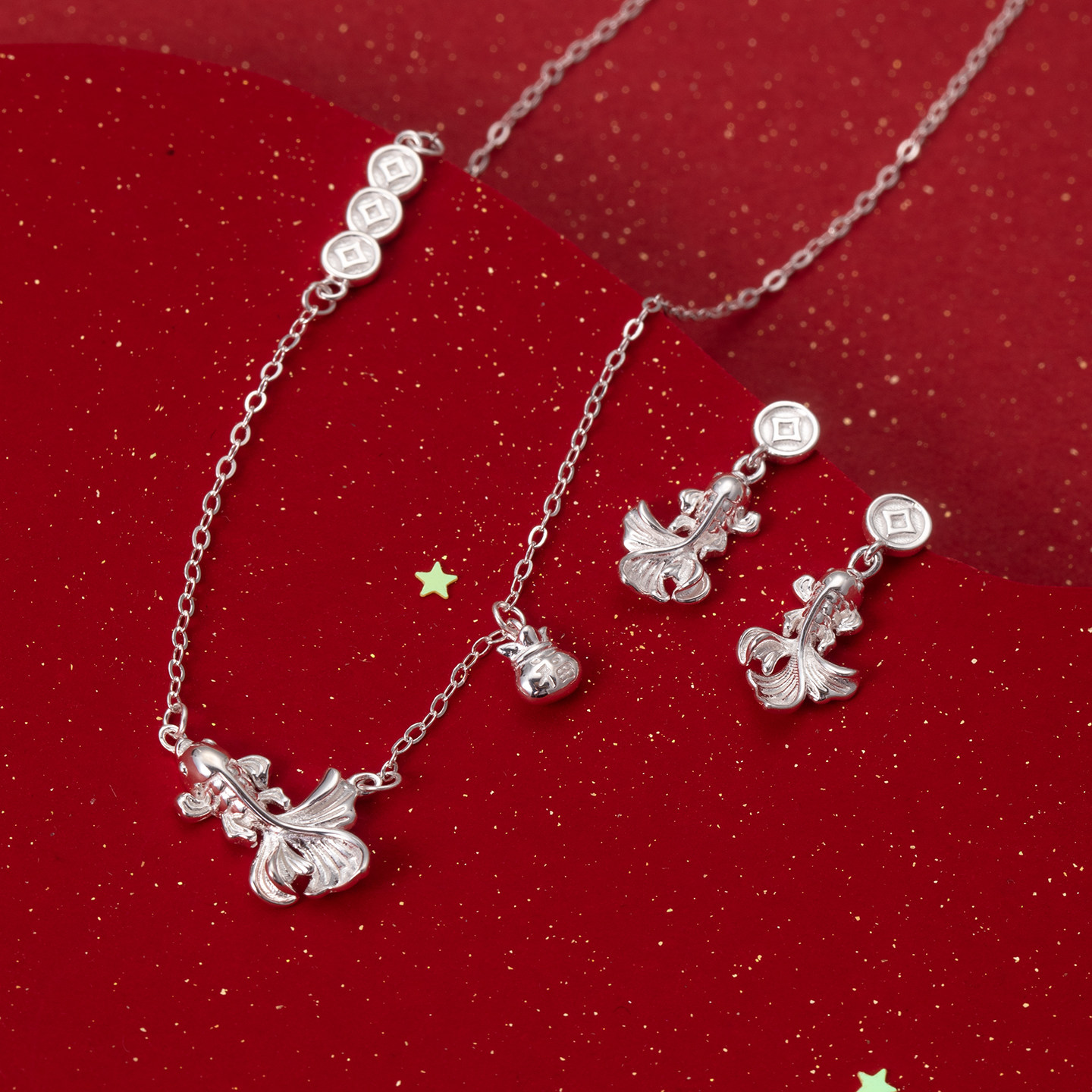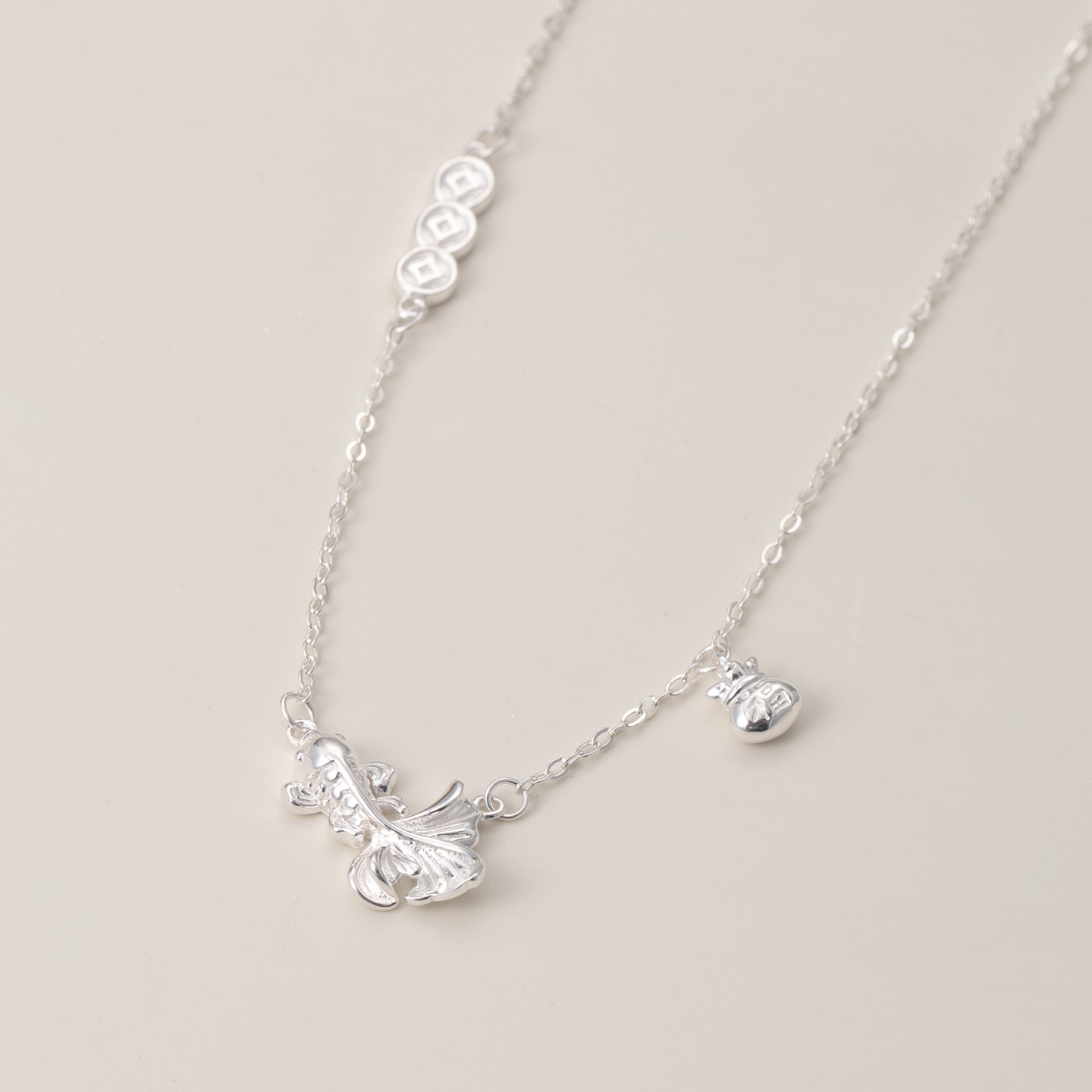 猫蛰S999足银好运喜庆锦鲤项链民族风纯银锁骨链送女朋友闺蜜礼物