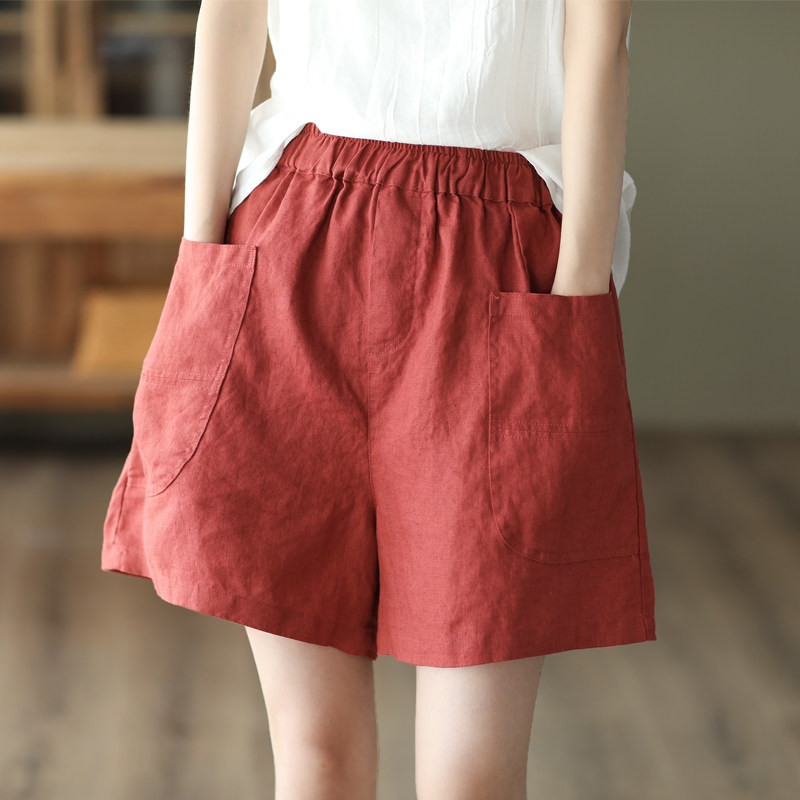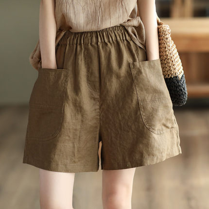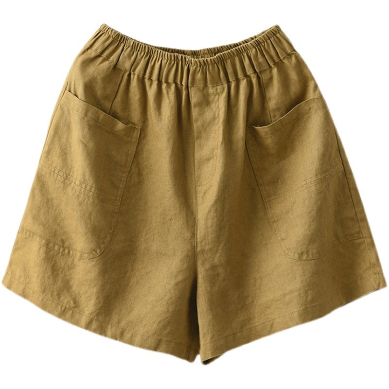 2025夏季新款复古高支亚麻裤女松紧腰阔腿短裤显瘦休闲裤直筒裤夏