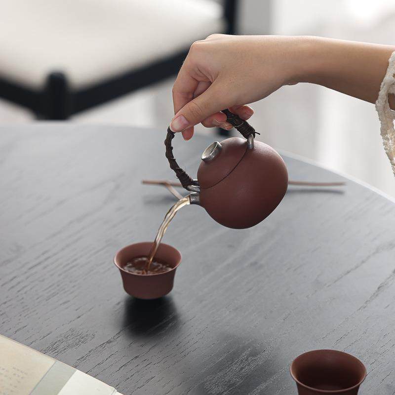 藤编手提圆壶鎏银小茶壶提梁壶家用高档原陶紫砂泡茶壶单壶小品壶