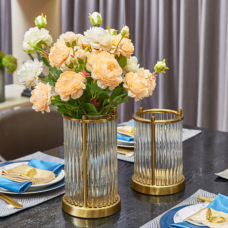 极速轻奢欧式美式餐桌玻璃干花花瓶摆件北L欧家居客厅玄关装饰品
