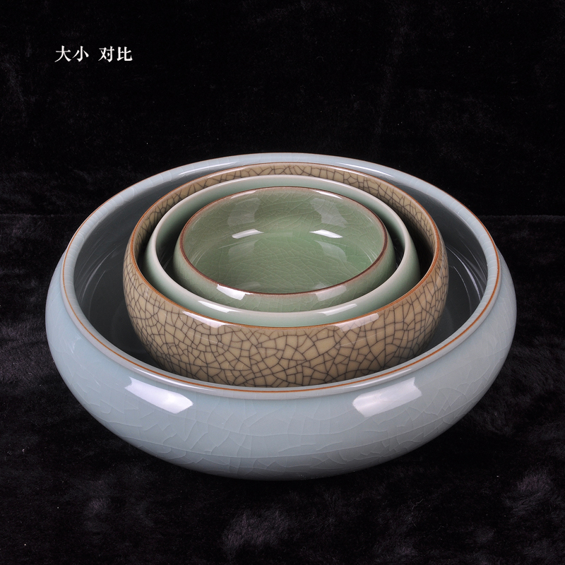 龙泉青瓷哥窑茶渣缸茶洗烟缸水盂渣斗多用途中式果盘陶瓷笔洗缸