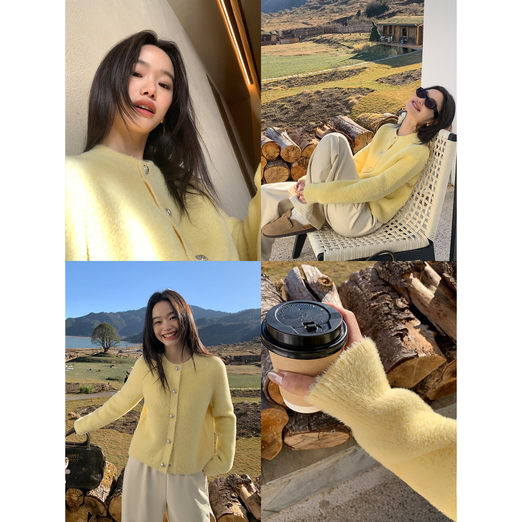 pusumede软糯亲肤!多巴胺仿貂毛开衫毛衣女气质温柔慵懒针织上衣