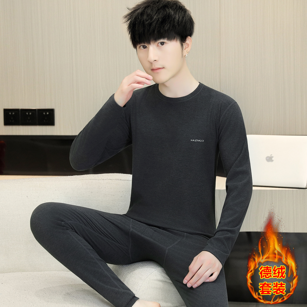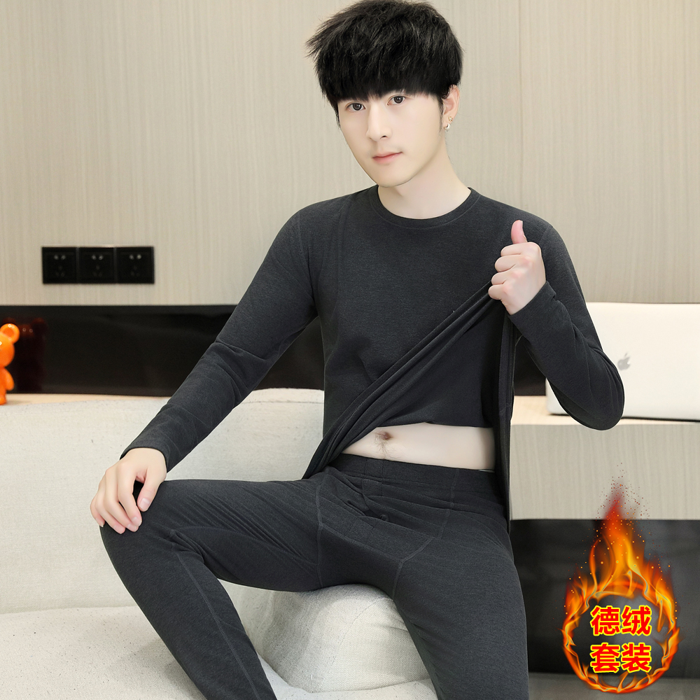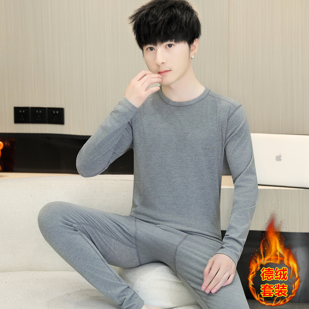 男士德绒保暖内衣套装青少年男孩内搭棉毛衫中学生秋衣秋裤男款冬