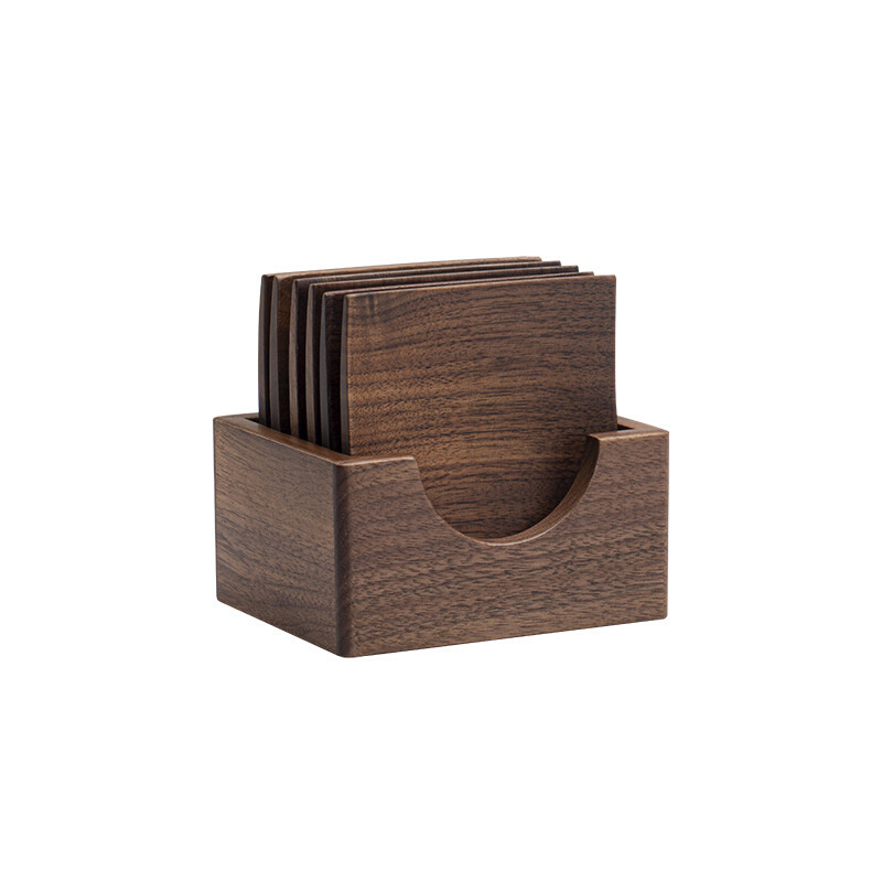 黑胡桃木四方杯垫带收纳盒实木隔热垫茶杯托茶碟茶道茶托