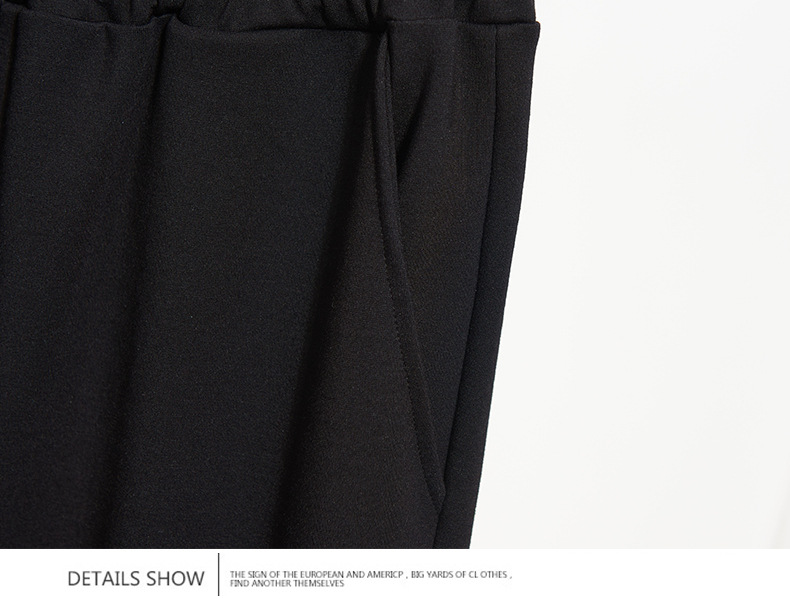 高腰弹力黑色裤子九分哈伦萝卜裤