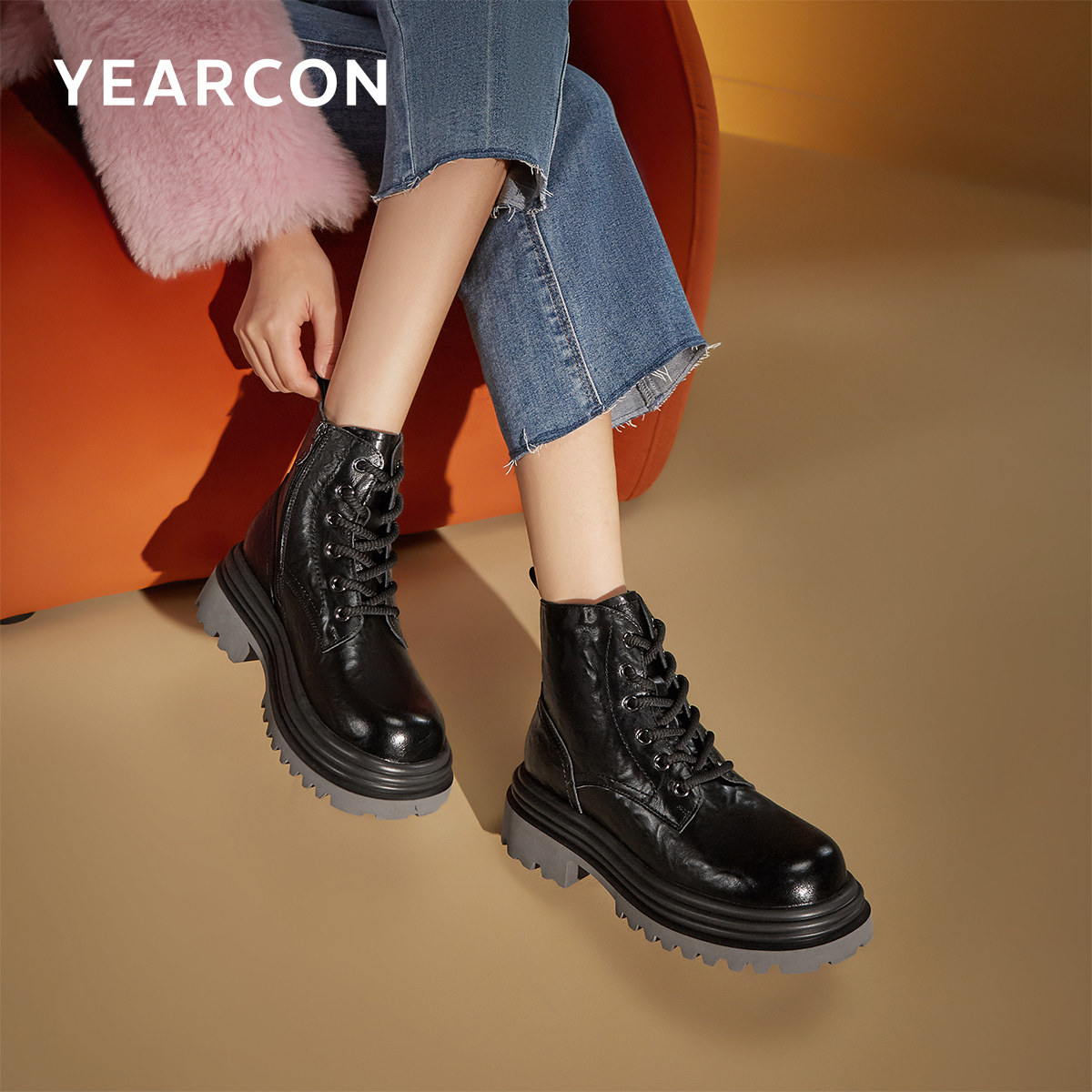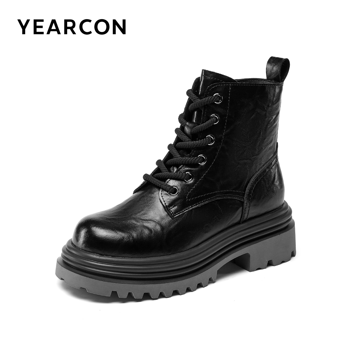 意尔康女鞋秋冬复古休闲马丁靴粗跟单靴英伦风短靴女士皮鞋小个子
