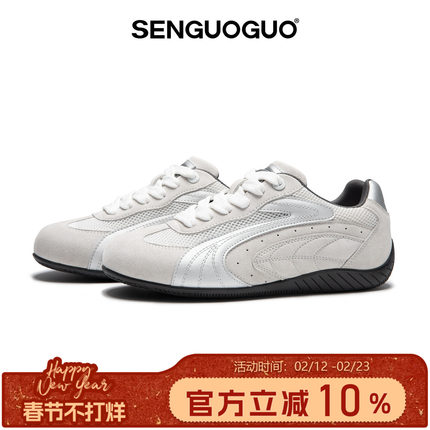 森果果 赛车鞋/灰银色德训鞋男2025冬季新款网面透气情侣鞋子板鞋