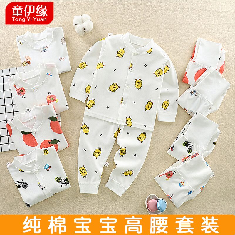 婴儿秋装宝宝秋衣秋裤套装男童女童高腰护肚裤纯棉儿童内衣裤0-4