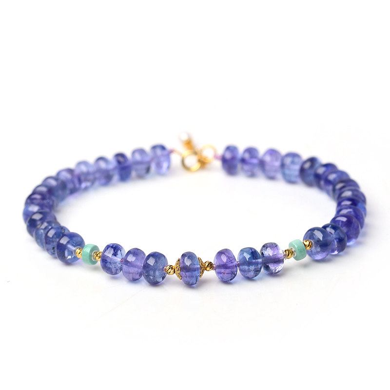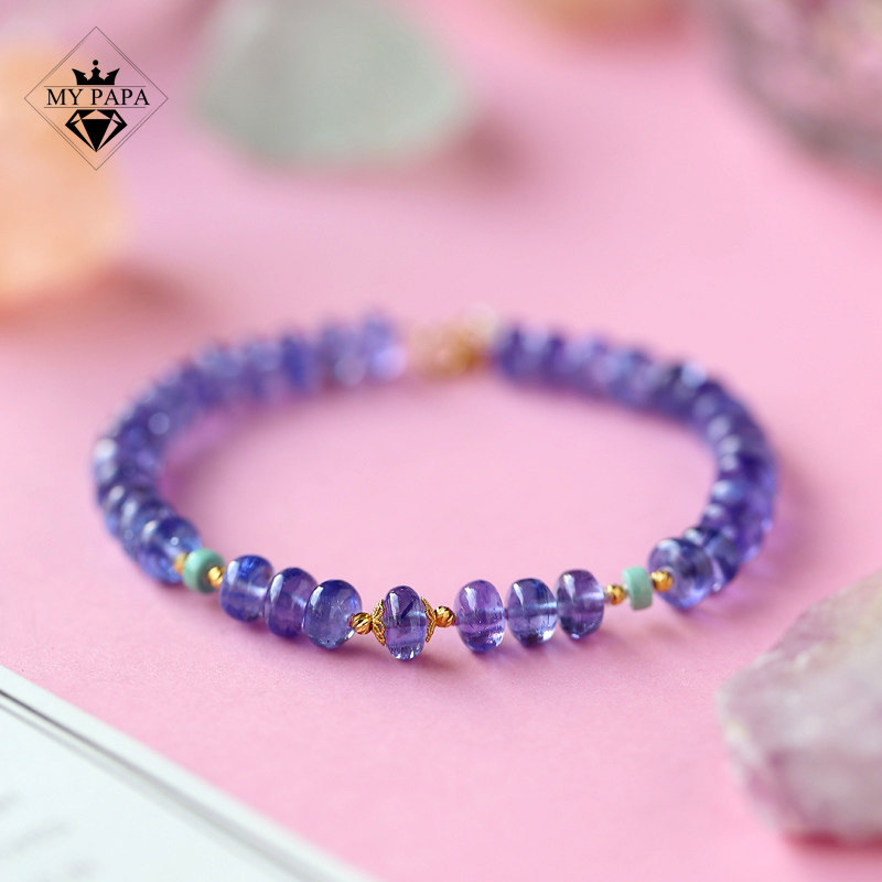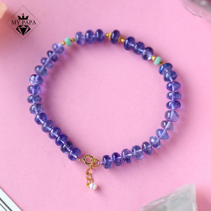 MYPAPA水晶彩宝毕业级宝石级晶体浓郁坦桑石手链女手串18K金