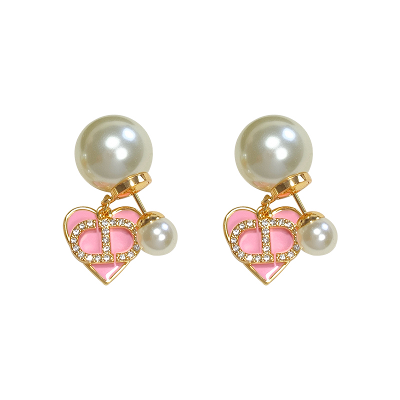 奥米迪奥爱心镶钻CD珍珠耳环女时尚个性百搭粉色吊坠耳钉26年新款