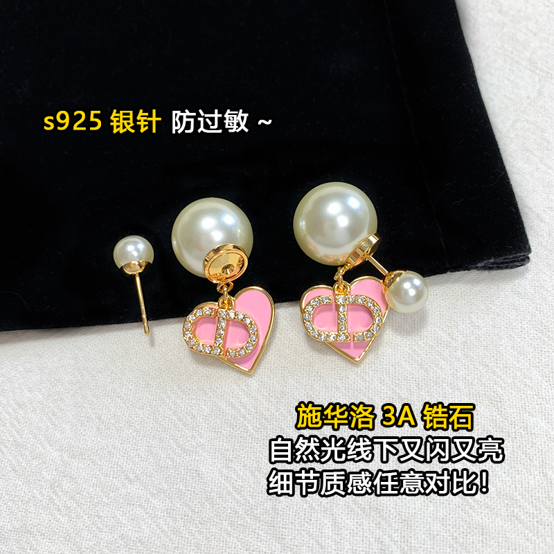 迪奥爱心镶钻CD珍珠耳环女时尚