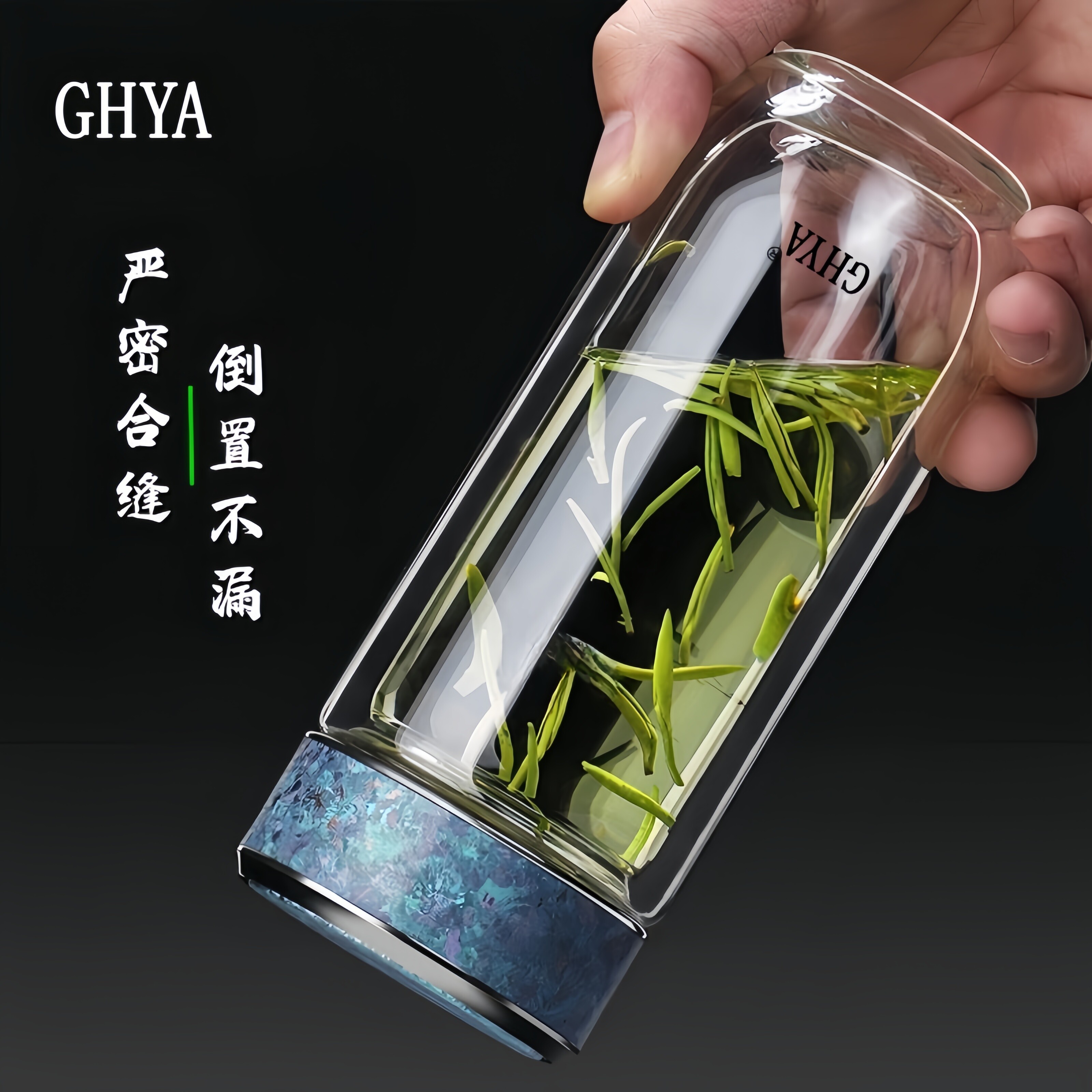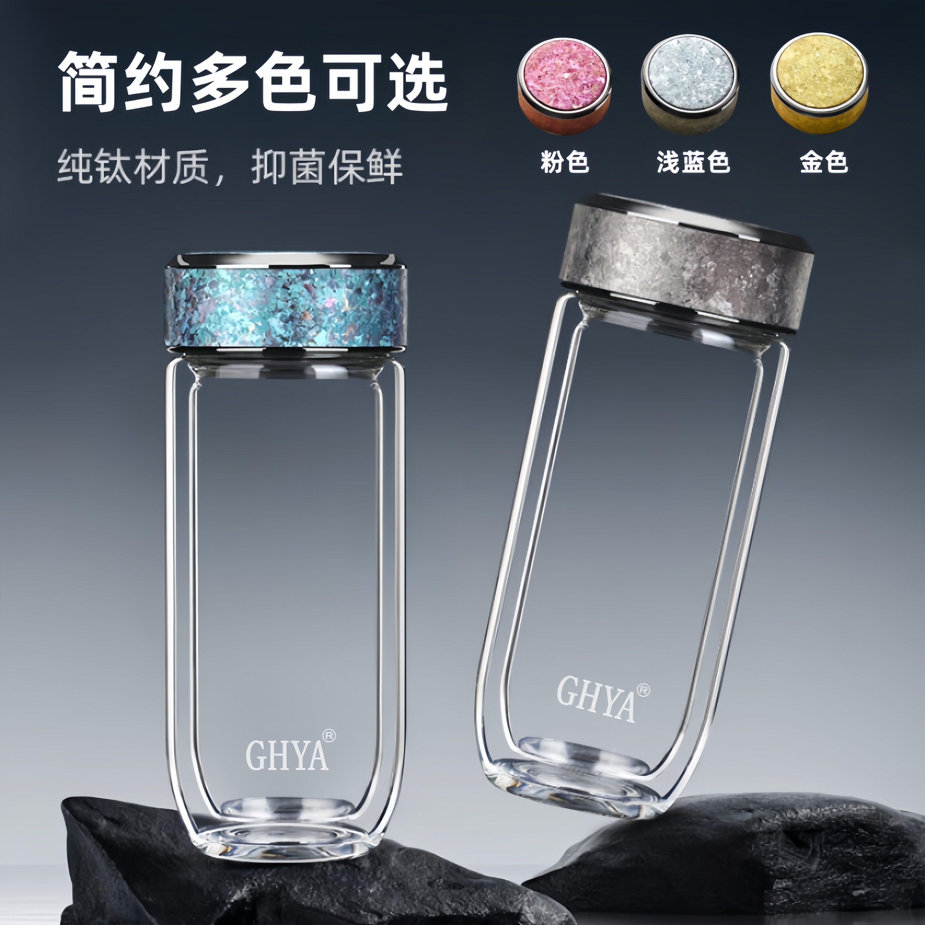 GHYA纯钛双层隔热抑菌玻璃杯男新款鹅蛋泡茶杯车载杯子女生日礼物