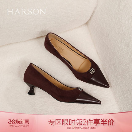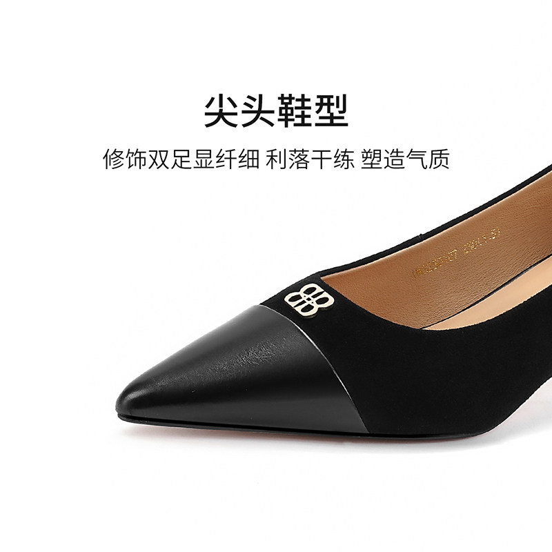 哈森时尚尖头浅口单鞋女春季新款拼色细跟时装鞋HWS250107