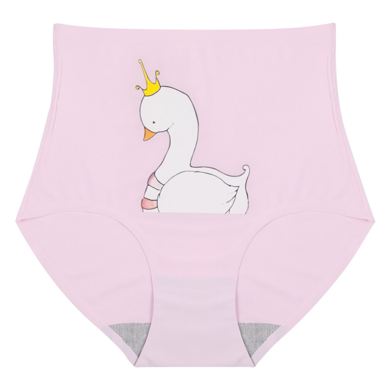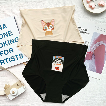 新品2条装 大码高腰冰丝无痕内裤女收腹美体卡通插画三角少女底裤