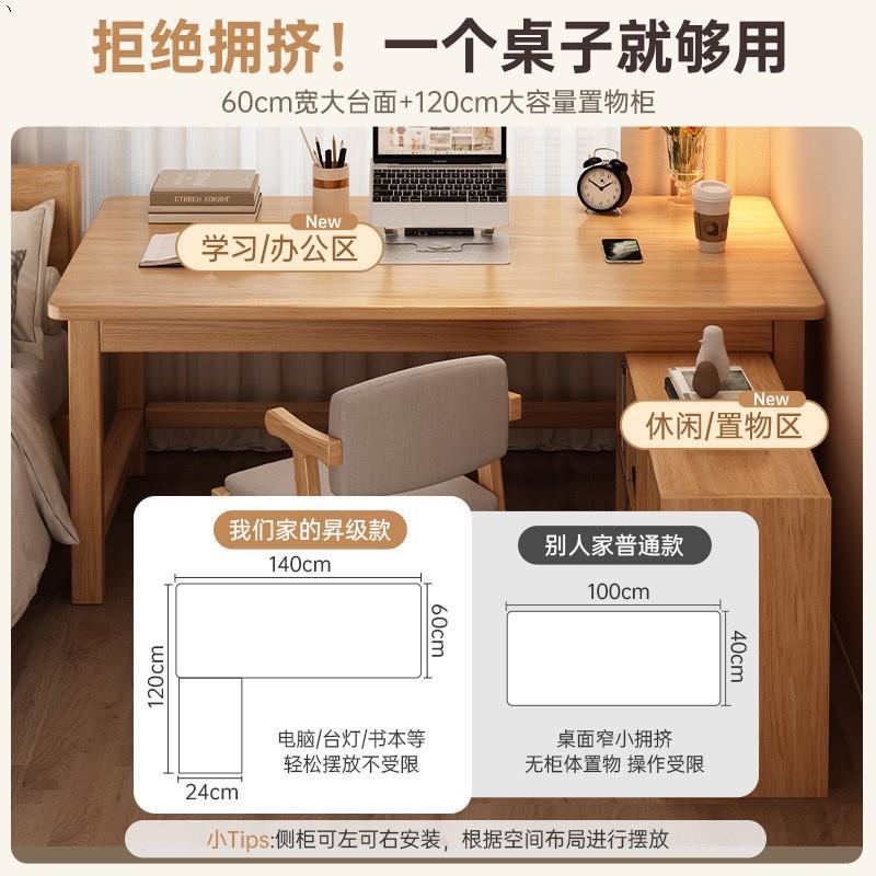 实木转角书桌书柜一体桌卧室电脑桌简易工作桌子学生学习桌写字桌