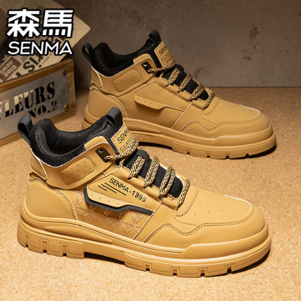 森马男鞋2025秋季新款运动休闲高帮板鞋男士真皮防水工装马丁靴子