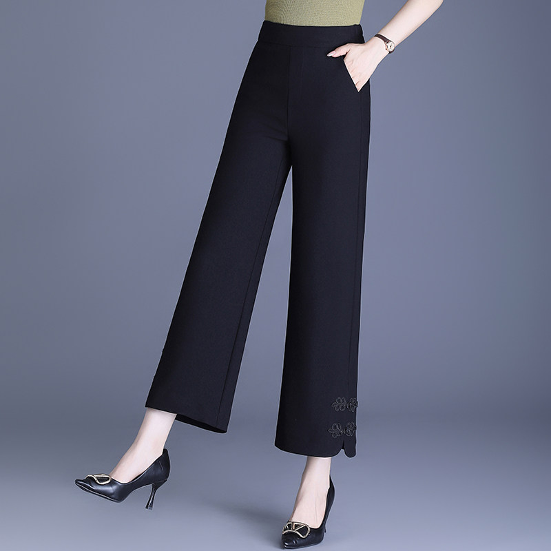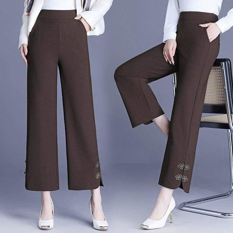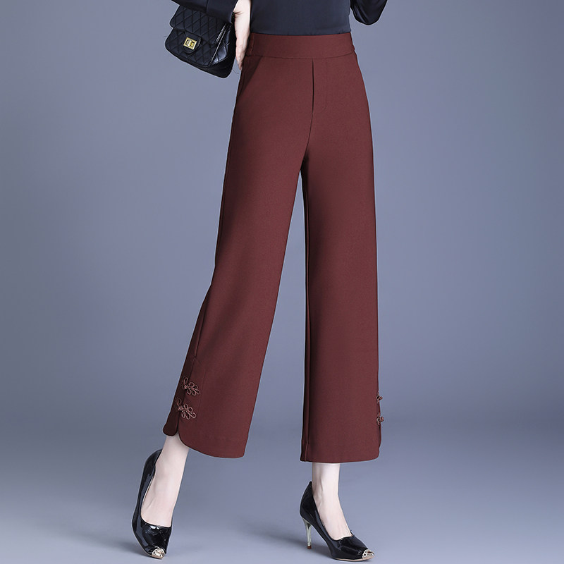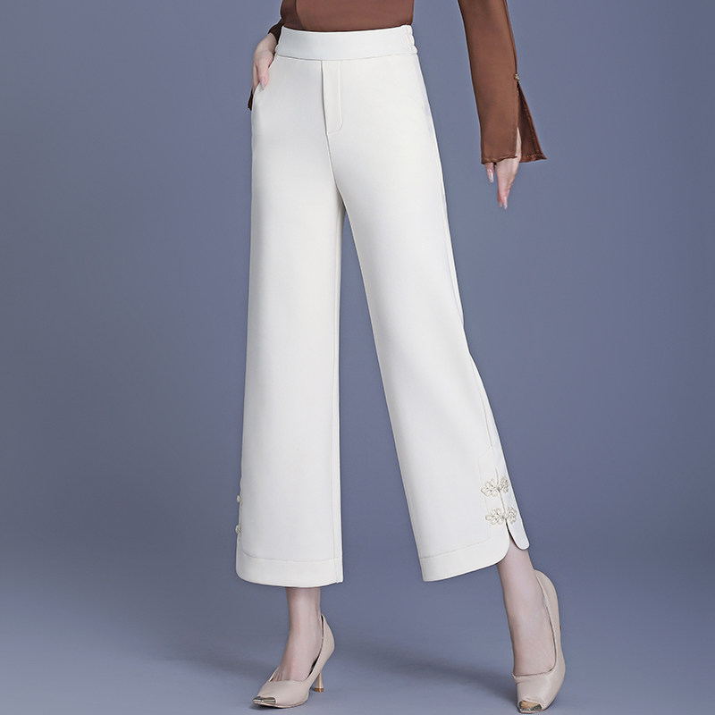 国风盘扣九分阔腿裤女2025春高腰后腰松紧腰直筒小个子9分裤子