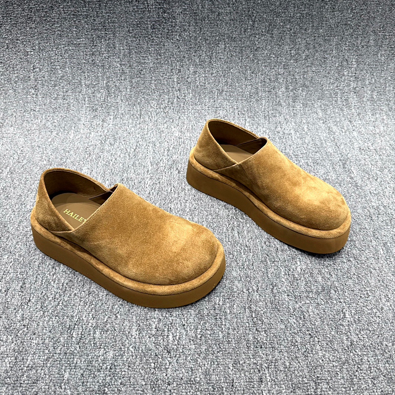 欧洲站真皮女鞋2025年秋季新款欧货磨砂皮英伦风懒人两穿乐福鞋